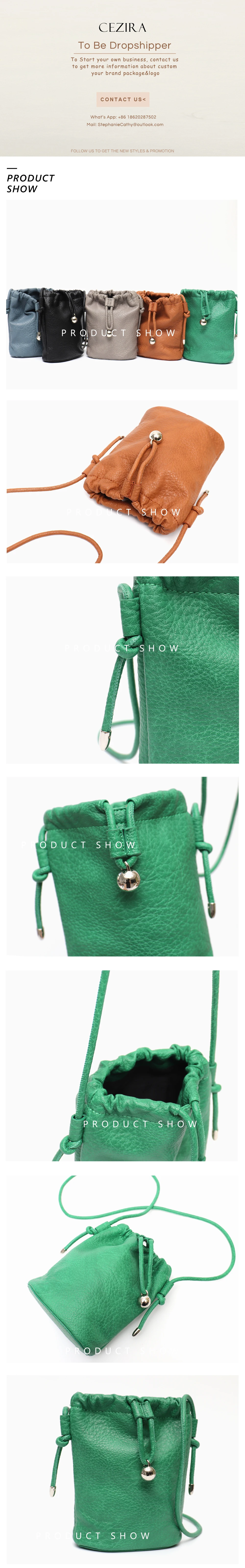 CEZIRA 2022 Fashion Women PU Vegan Leather Crossbody Sling Bags Drawstring Small Bucket Phone Purse Soft Casual Shoulder Handbag