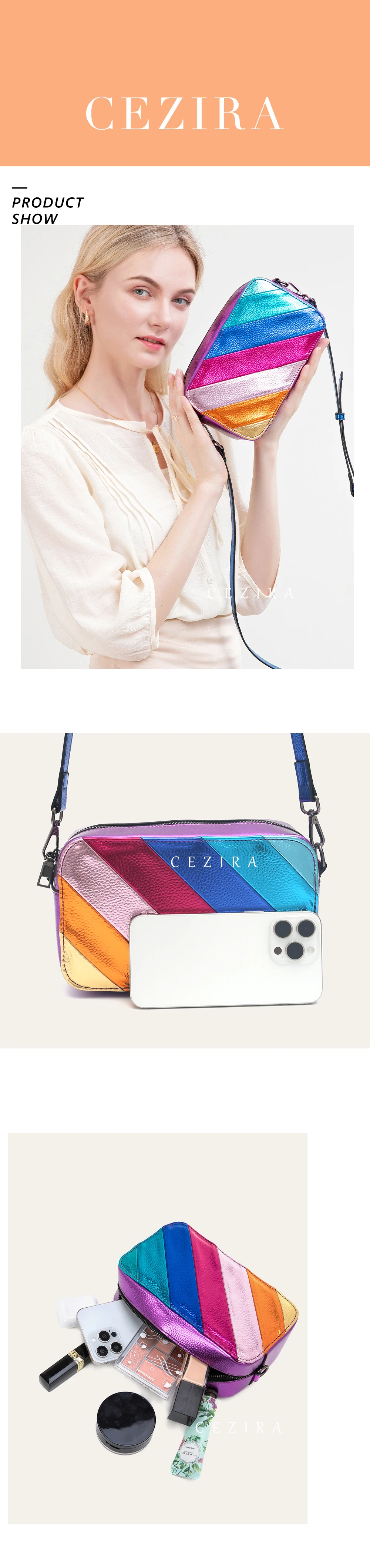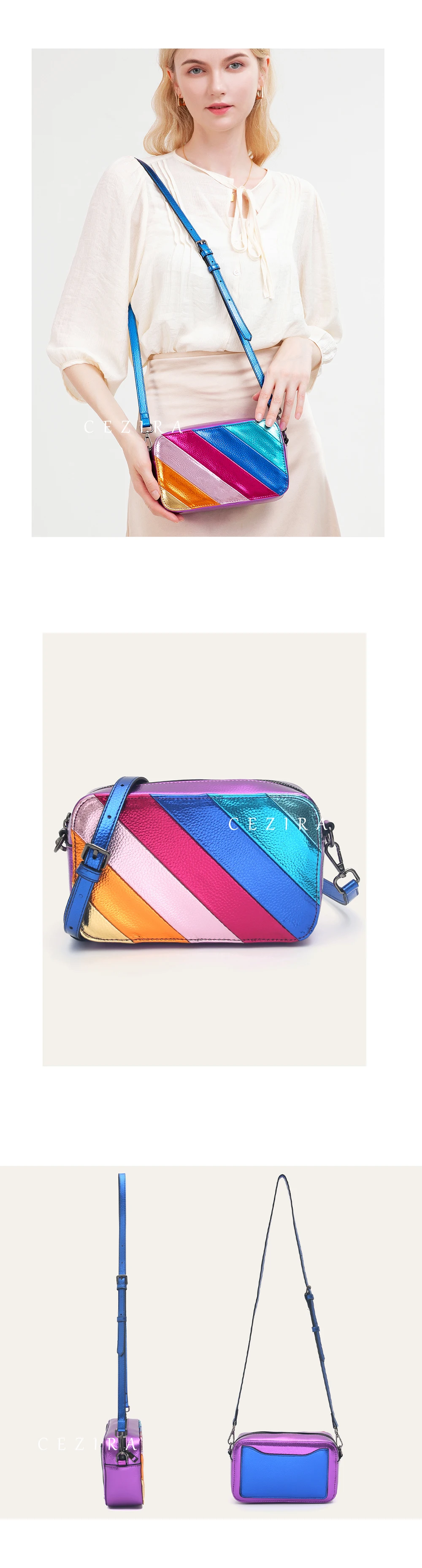 CEZIRA Brand Fashionable Design Colorful Metallic PU Vegan Leather Camera Bag Women’s Square Cross body Shoulder Handbag Daily