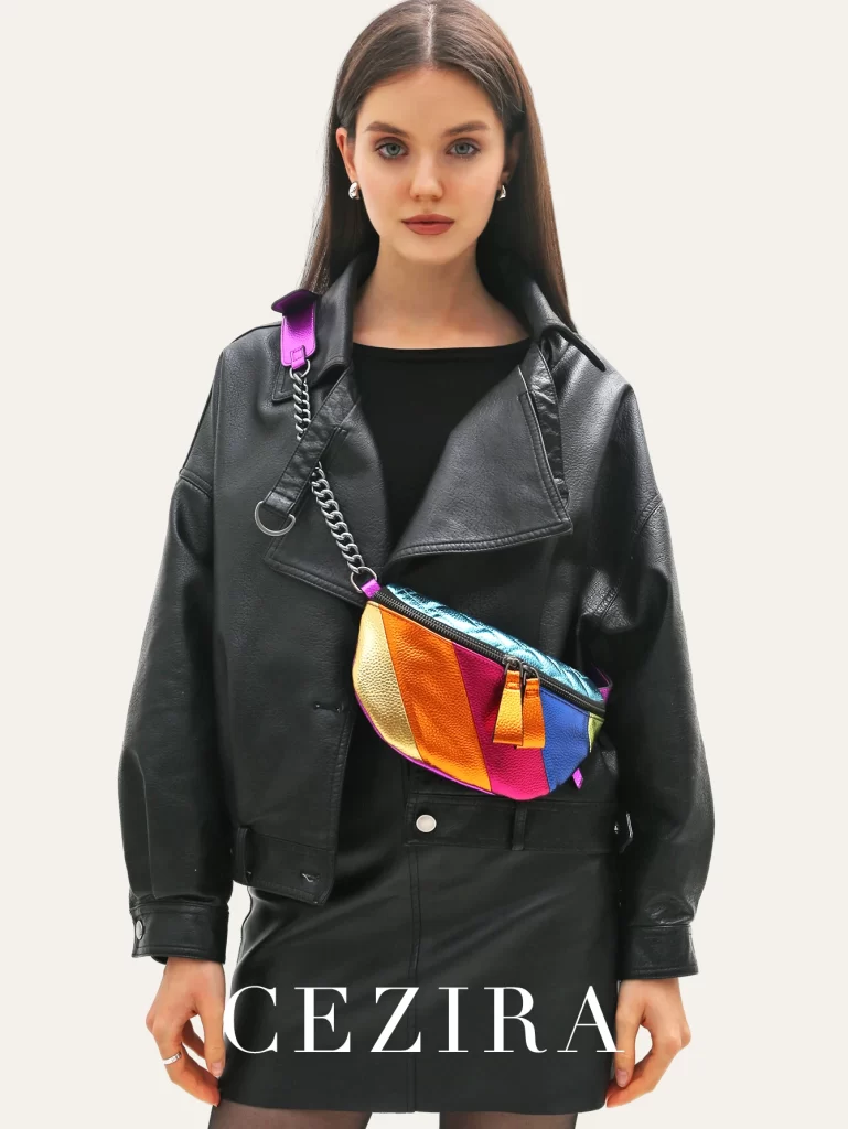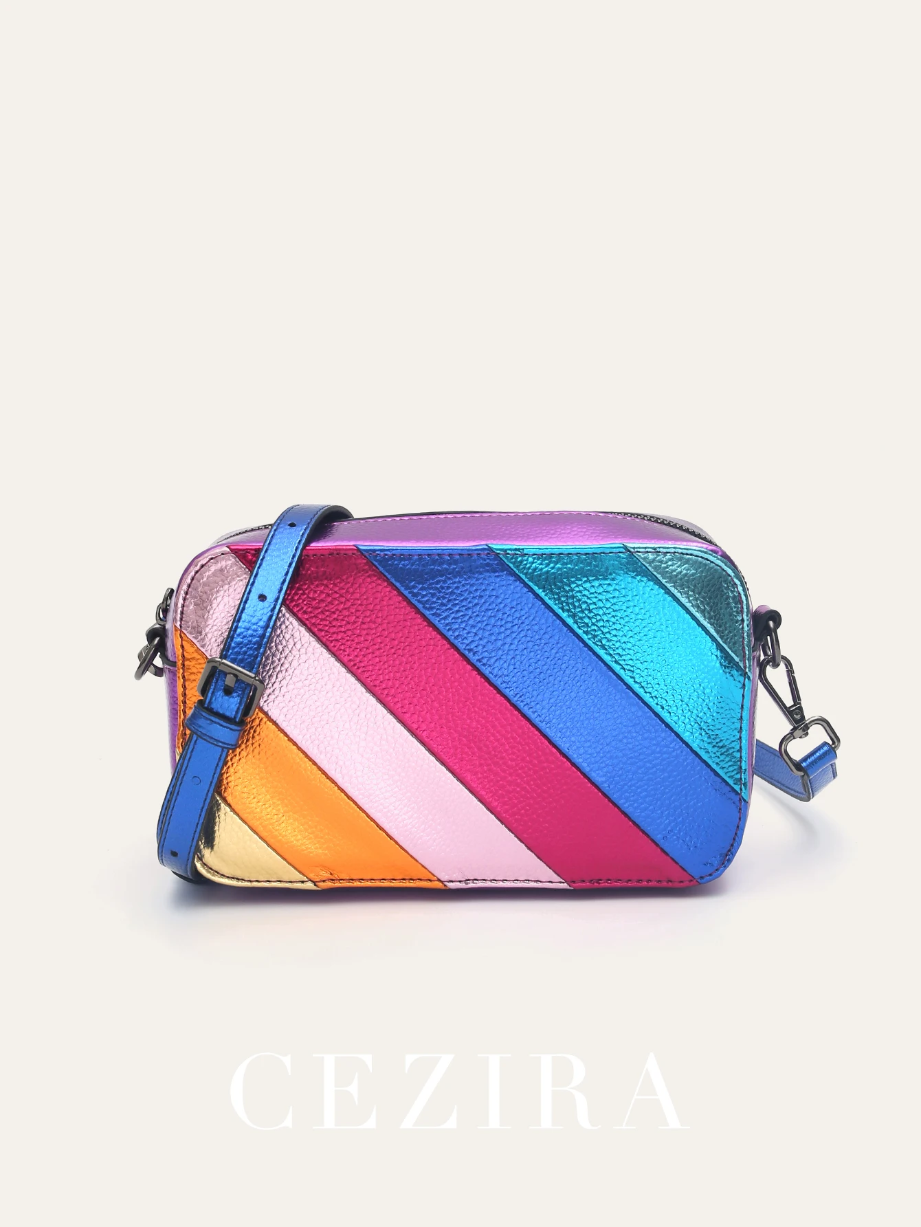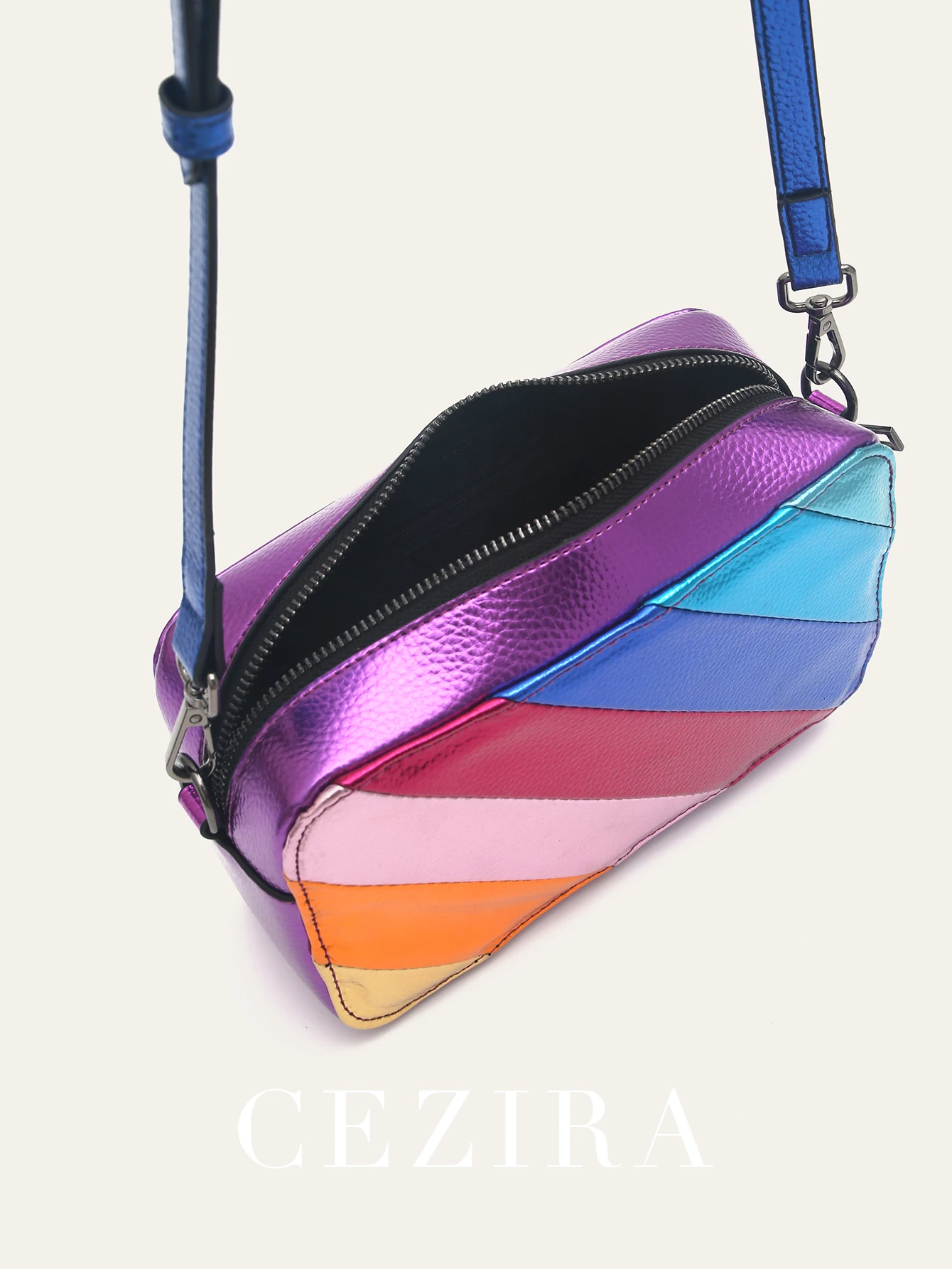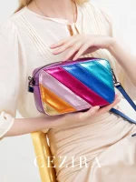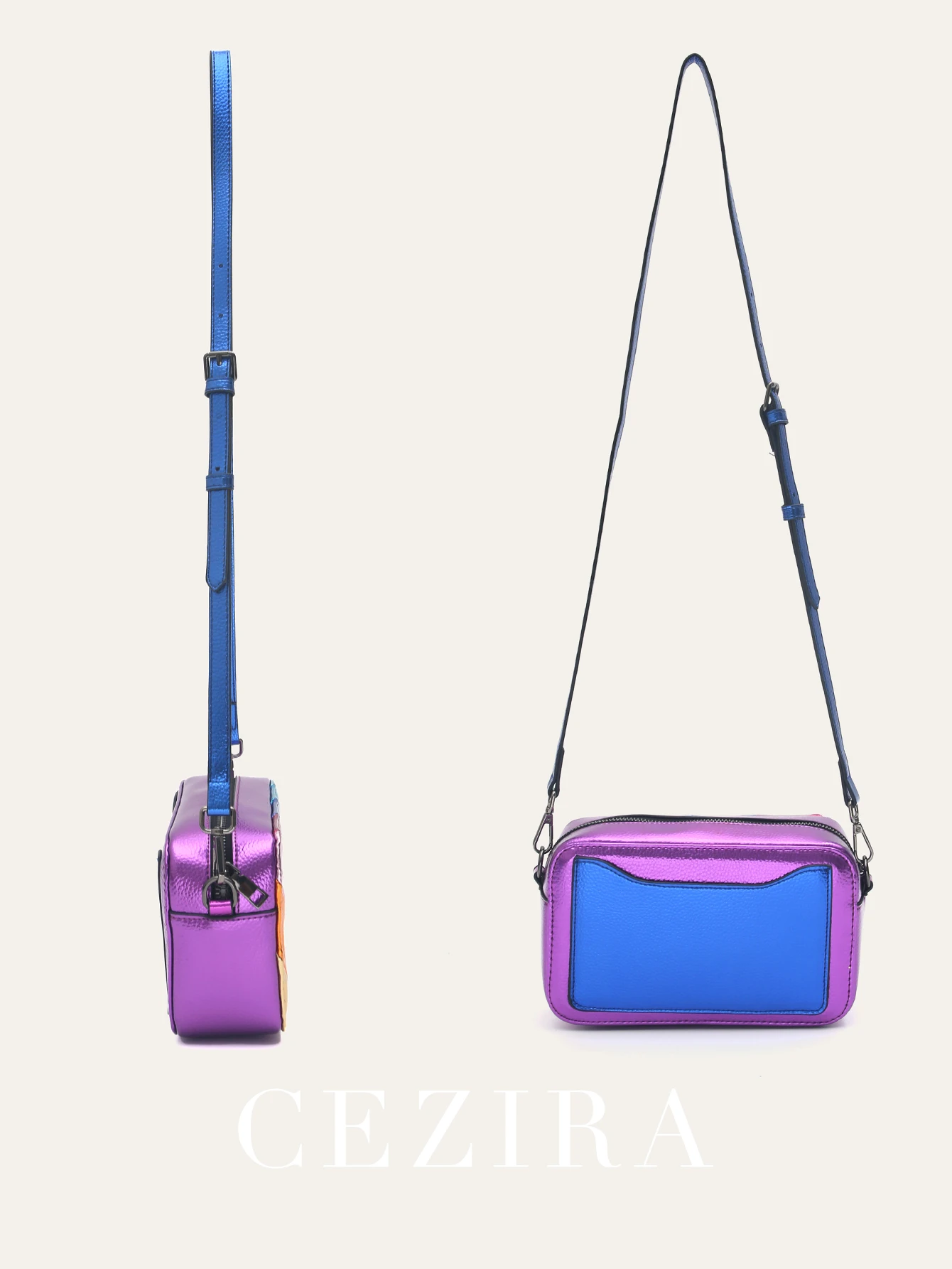 CEZIRA Brand Fashionable Design Colorful Metallic PU Vegan Leather Camera Bag Women’s Square Cross body Shoulder Handbag Daily