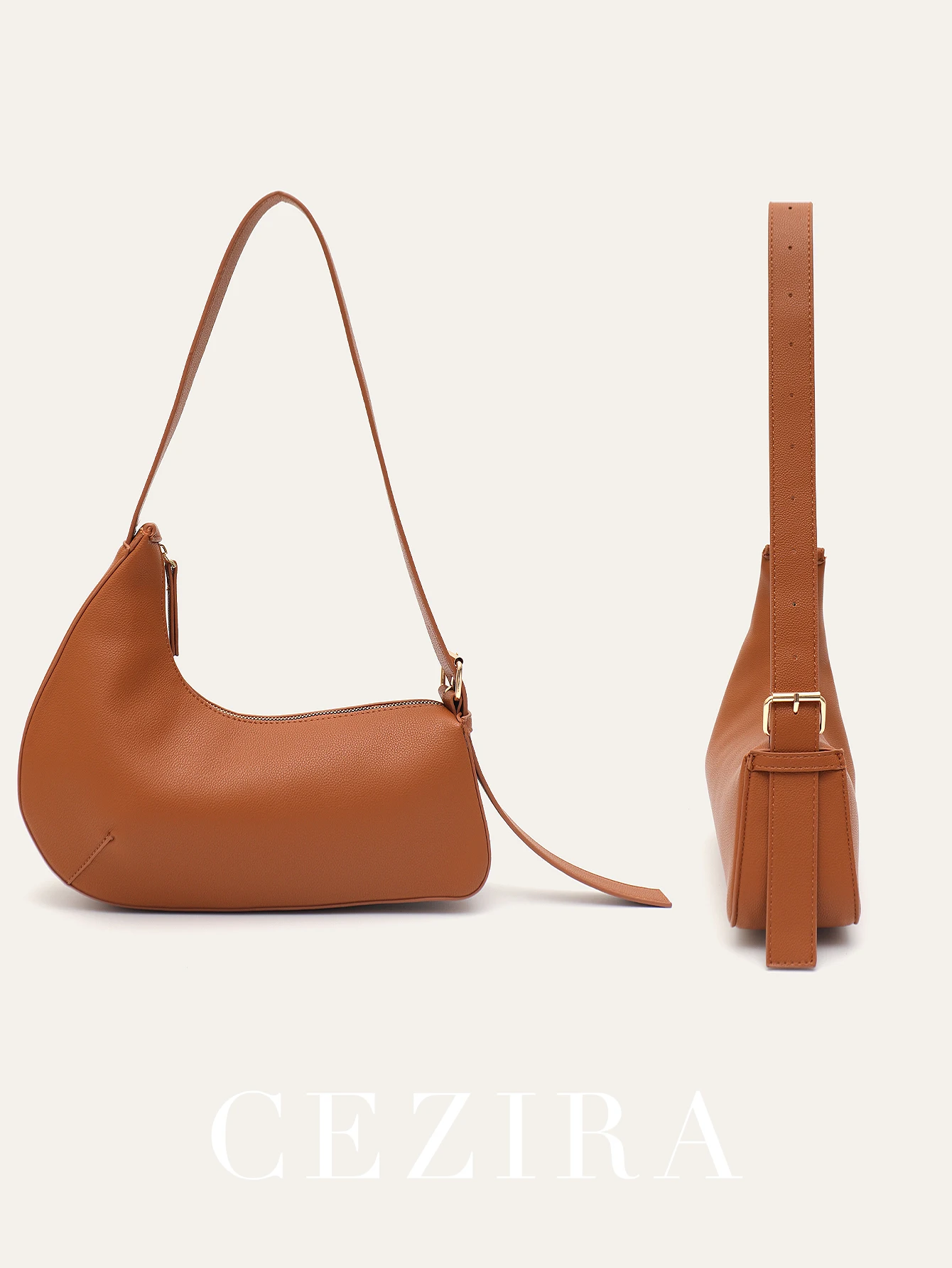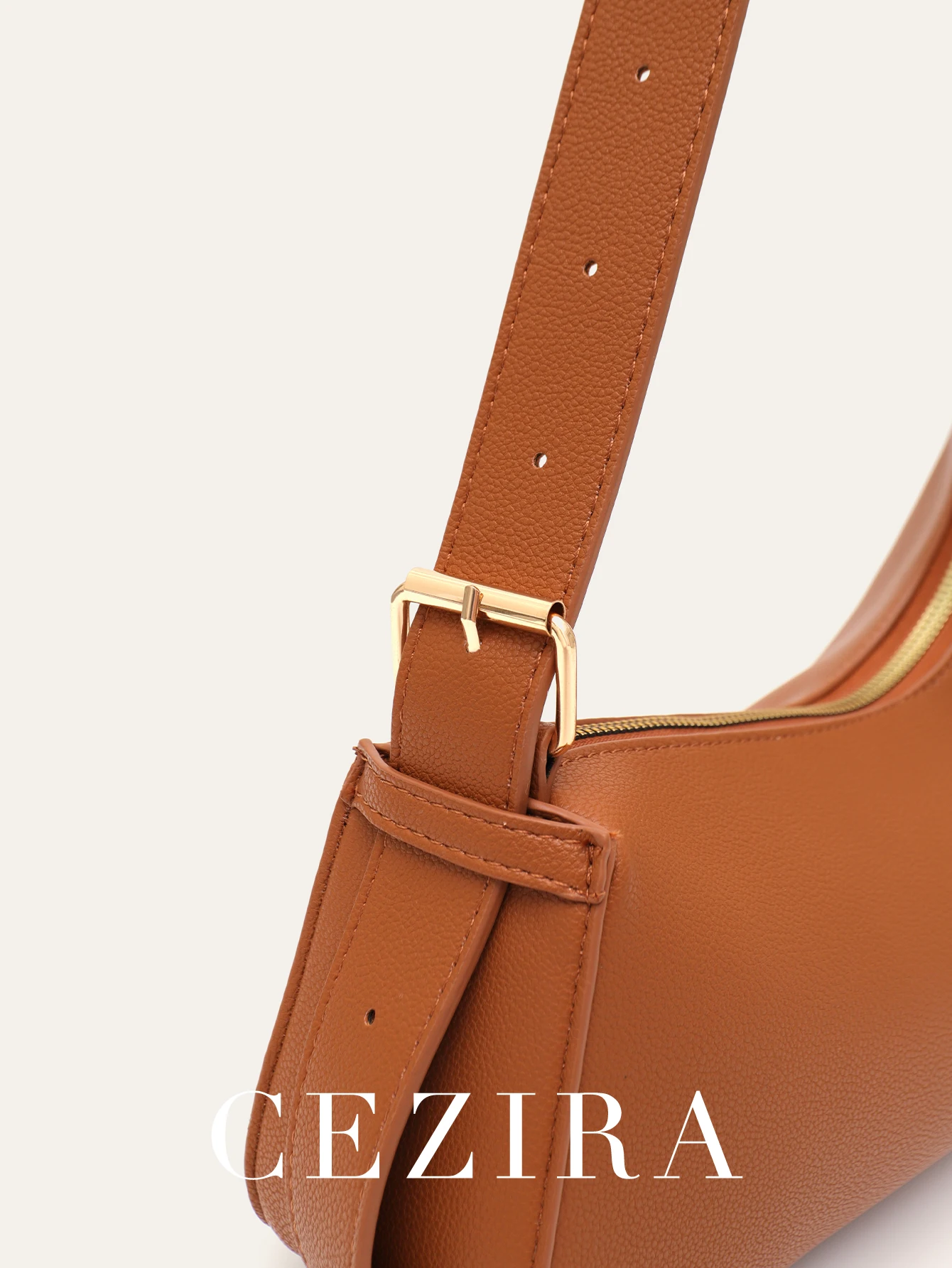 CEZIRA Elegant Minimalist Style Baguette Bag Women PU Leather Adjustable Strap Underarm Shoulder Novelty Shaped Handbag Fashion