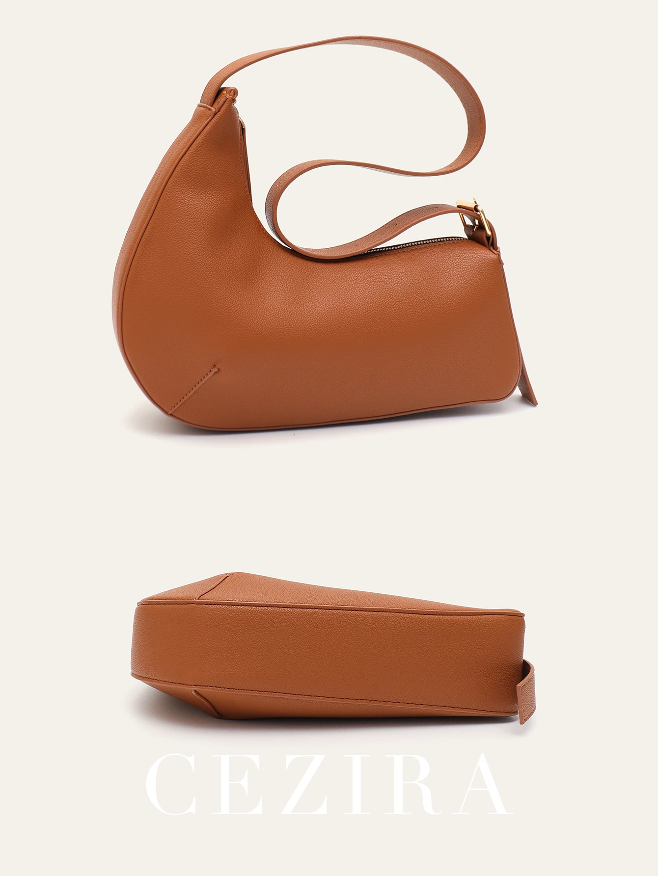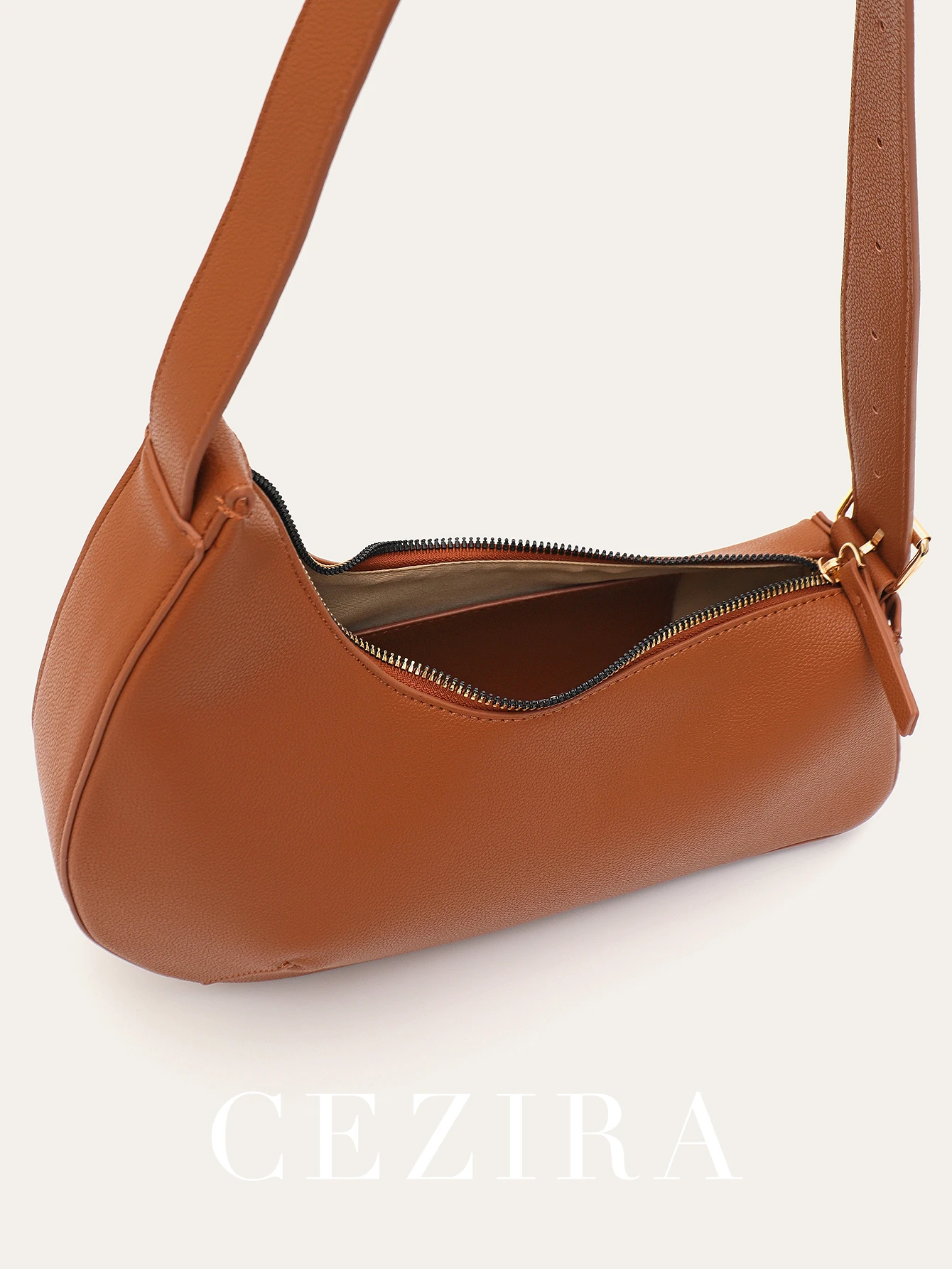 CEZIRA Elegant Minimalist Style Baguette Bag Women PU Leather Adjustable Strap Underarm Shoulder Novelty Shaped Handbag Fashion