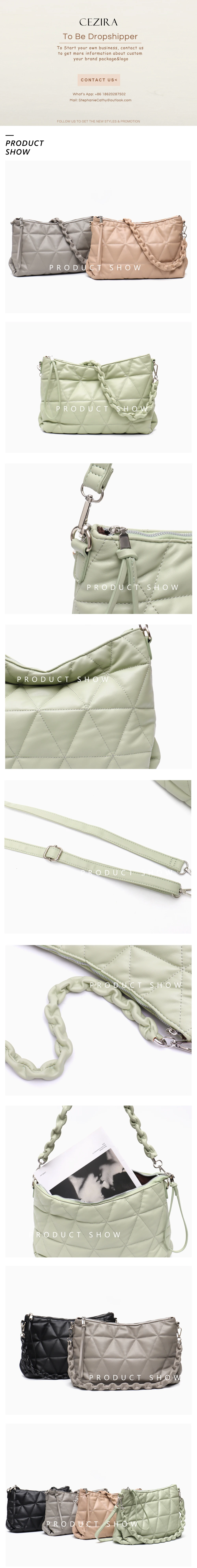 CEZIRA Fashion Brand Women PU Vegan Leather Pillow Bags Soft Space Handbags Luxury Quilted Thread Chain Shoulder Crossbody Purse
