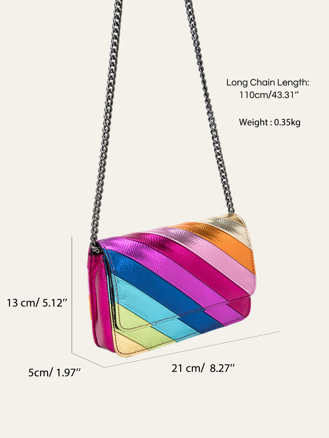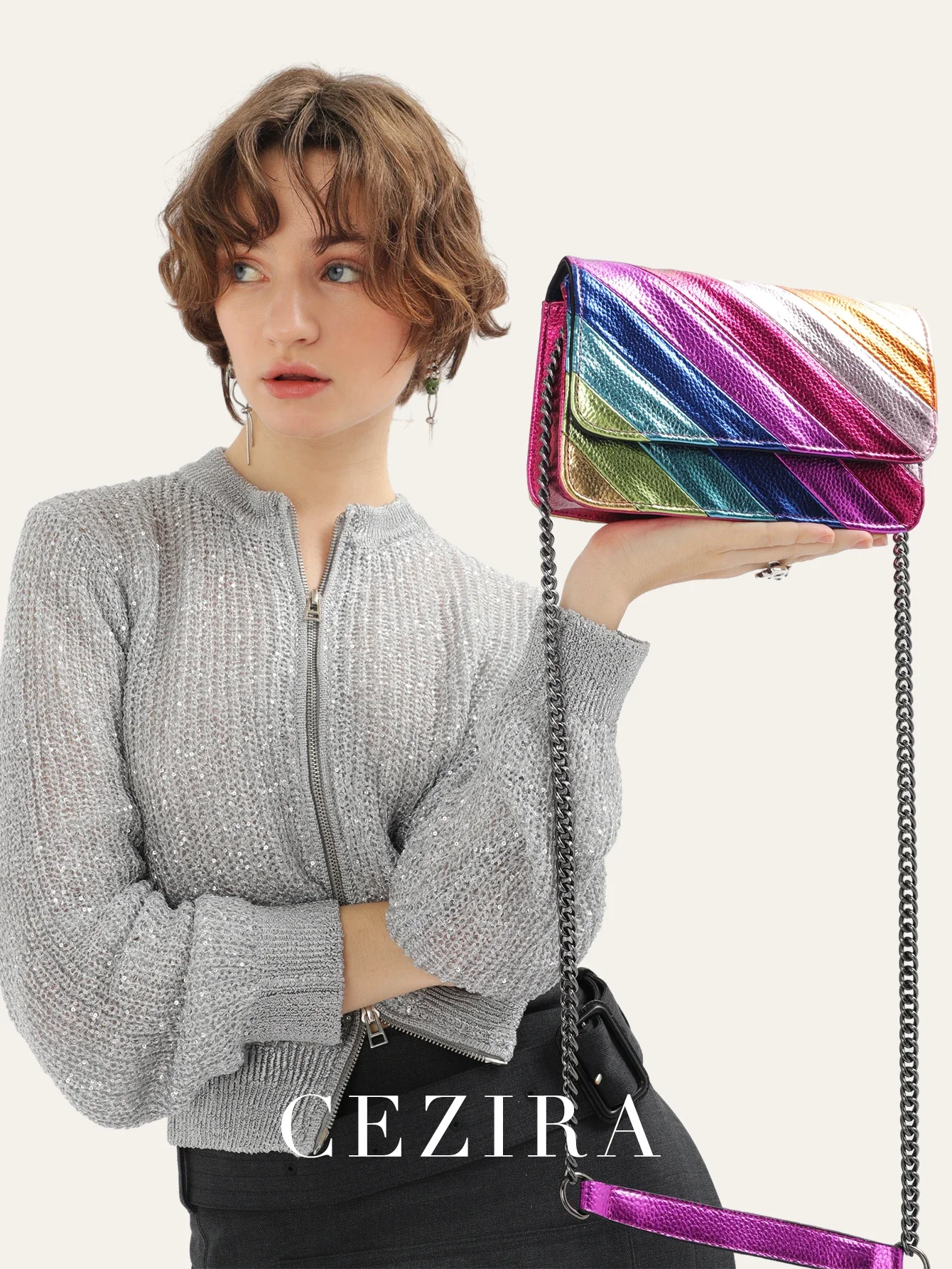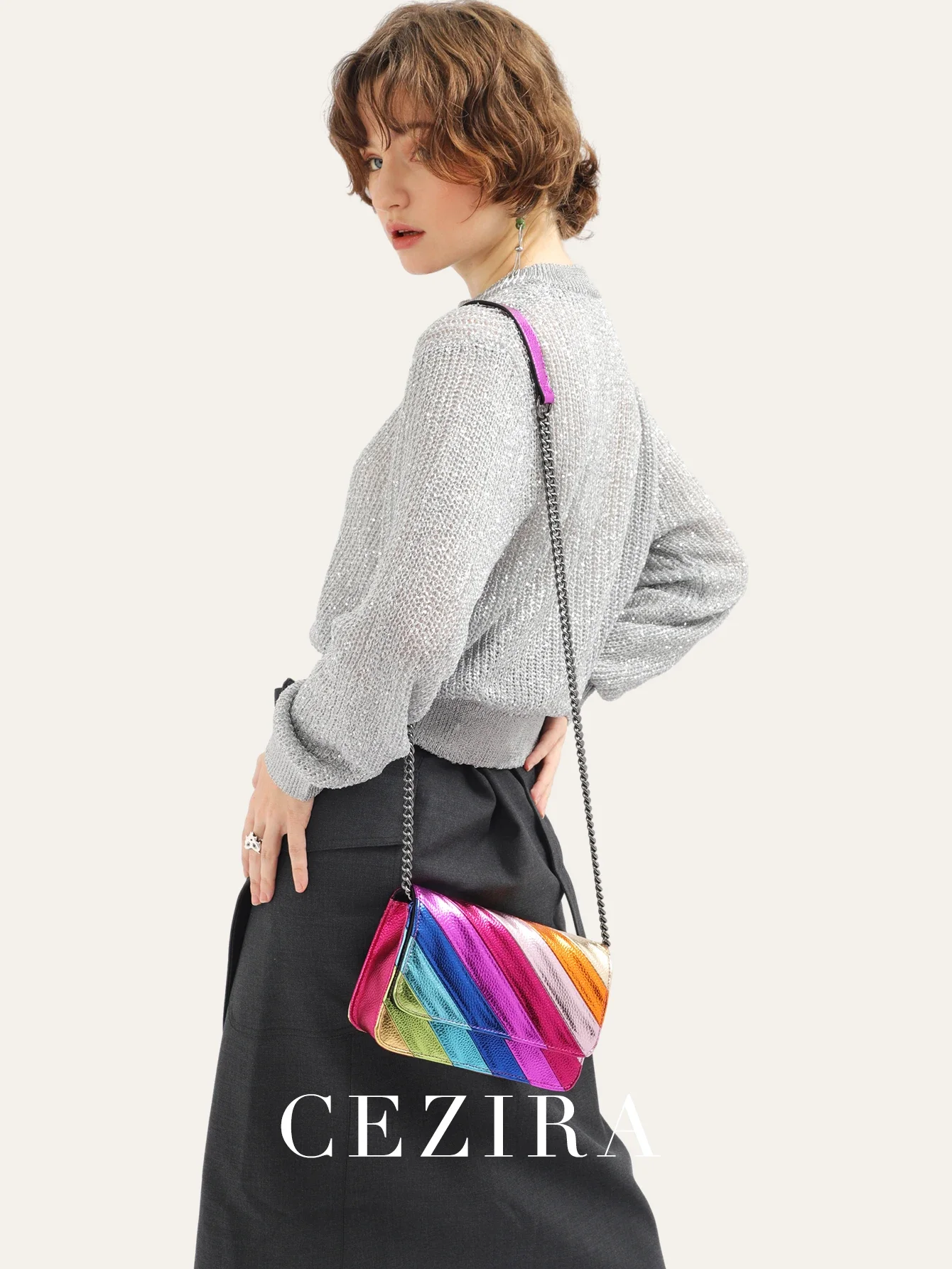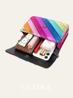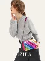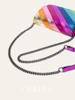 Be the first to review “CEZIRA Fashion Small Rainbow Colorful Stripes Handbag Women PU Leather Patchwork Square Flap Metal Chain Cross Body Shoulder Bag” Cancel reply