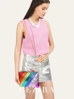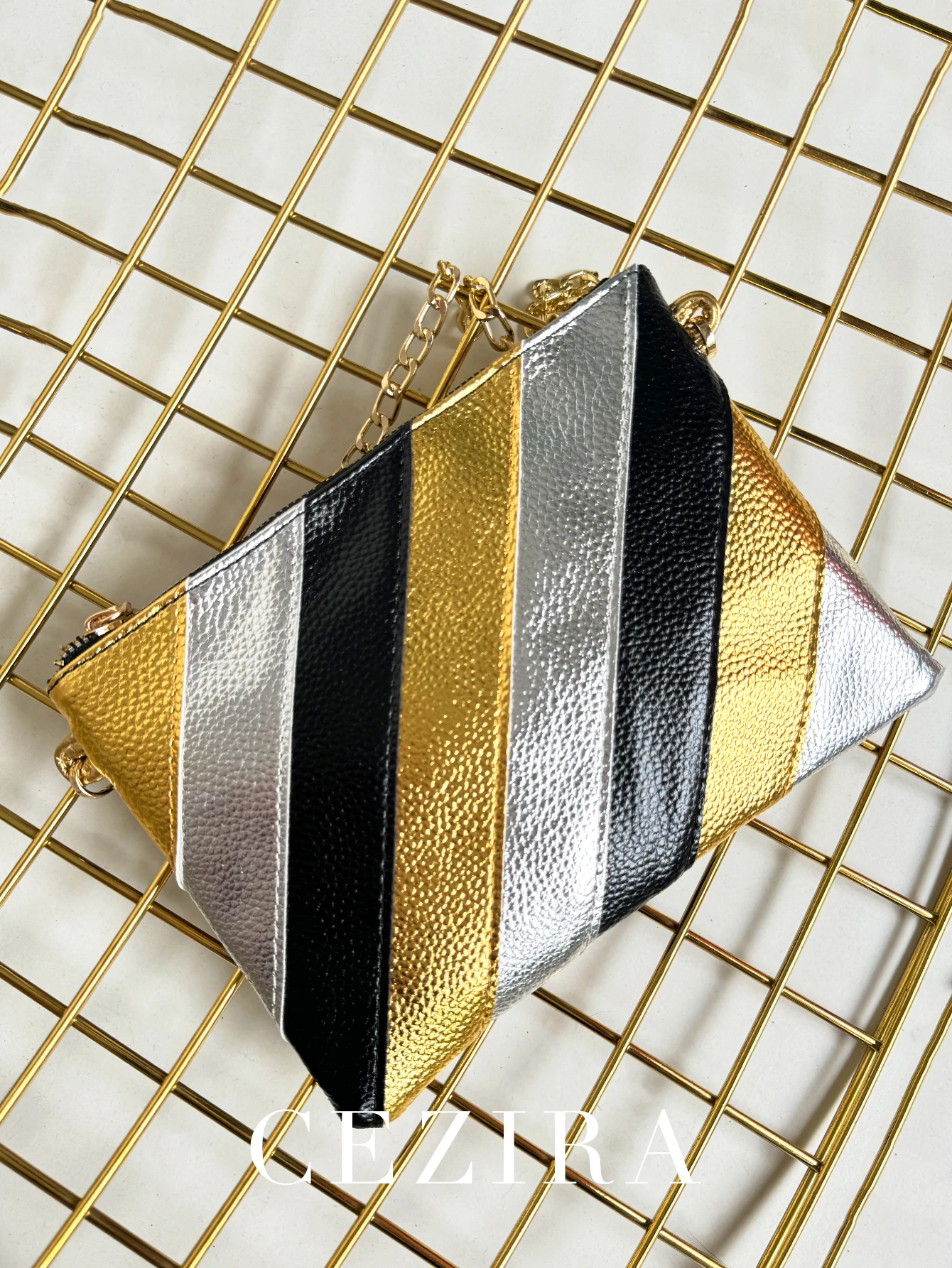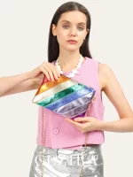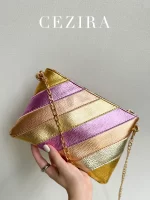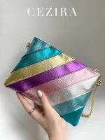 Be the first to review “CEZIRA Funky Metallic Color Stripes PU Leather Handbag Women’s Square Clutch Metal Chain Cross body Purse Fashion Y2K Party Prom” Cancel reply