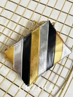 CEZIRA Funky Metallic Color Stripes PU Leather Handbag Women’s Square Clutch Metal Chain Cross body Purse Fashion Y2K Party Prom