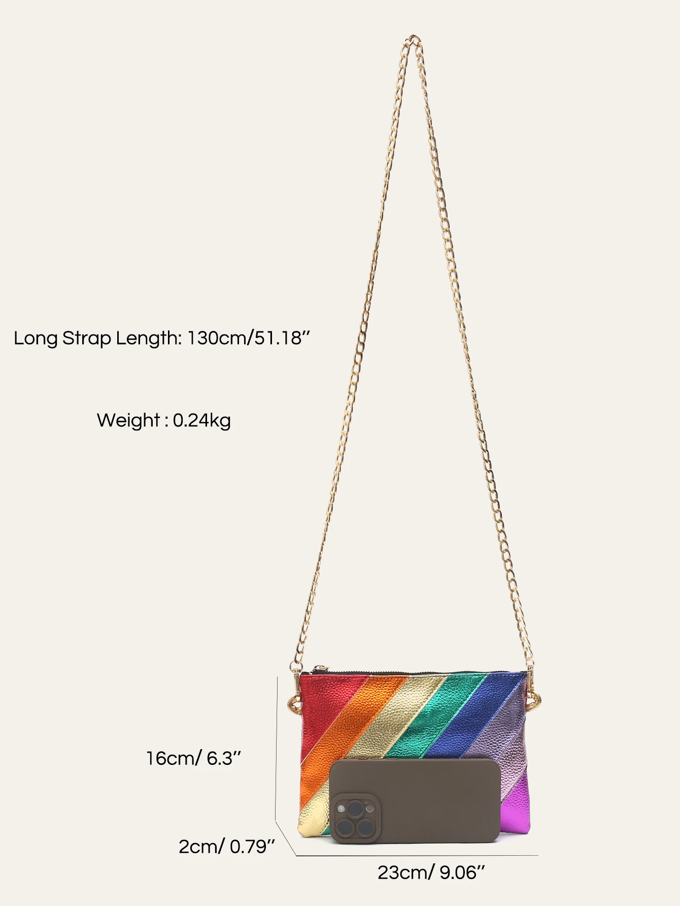 - Decoration: Metal Chain&Colorful Stripes