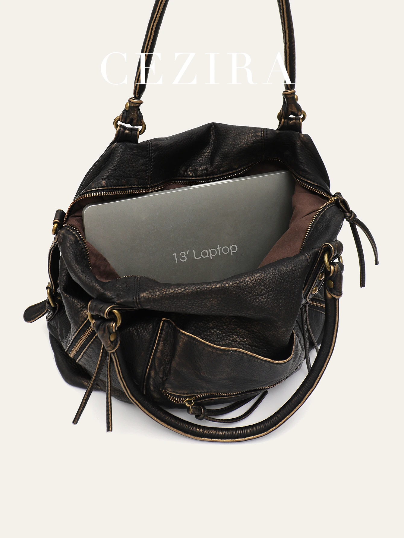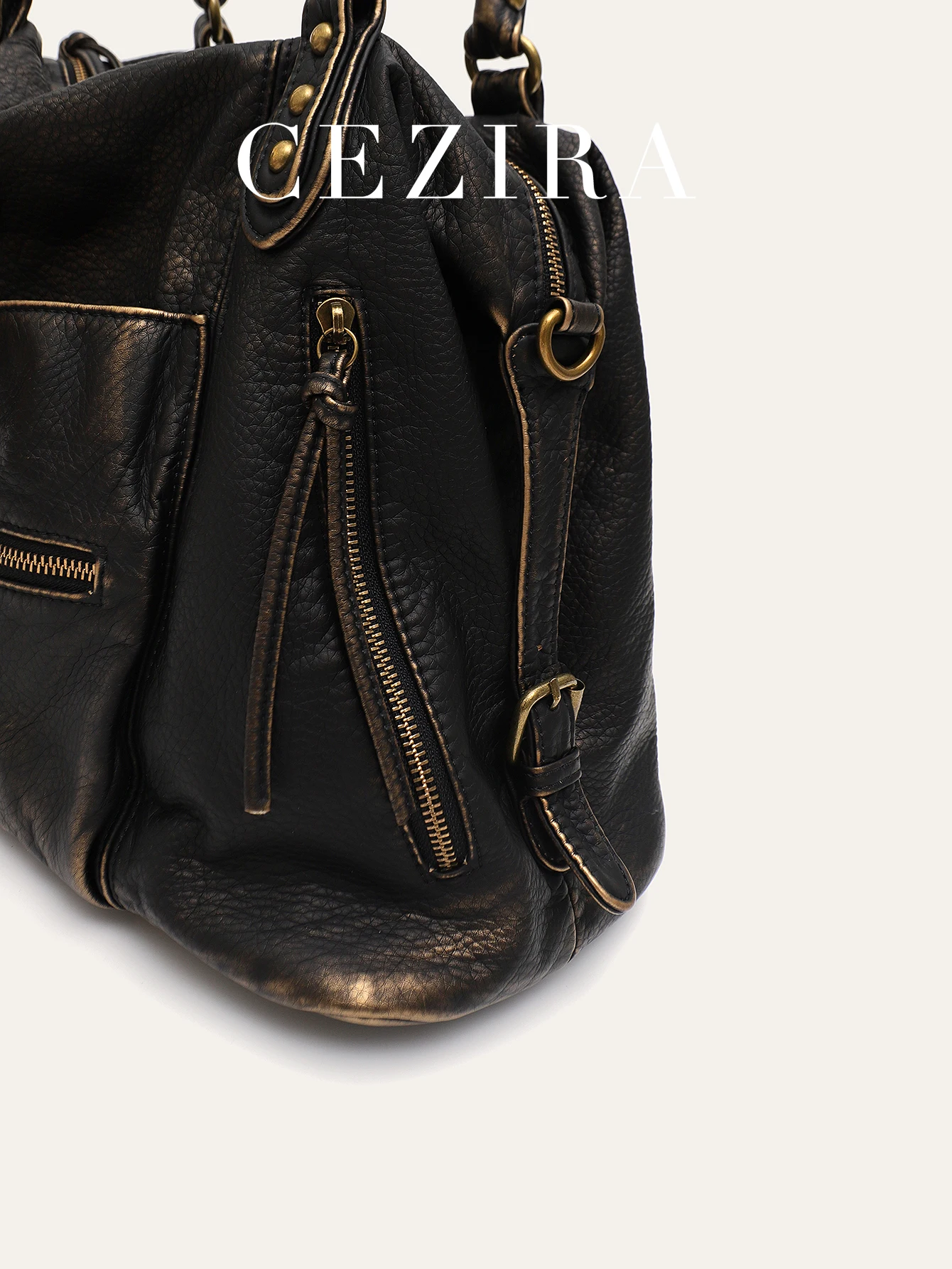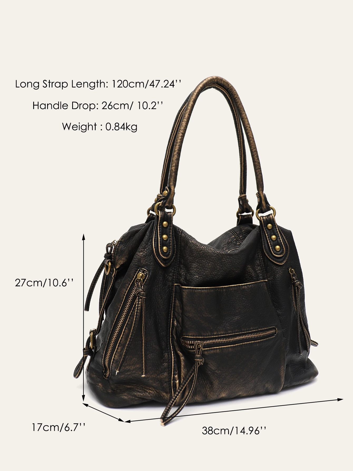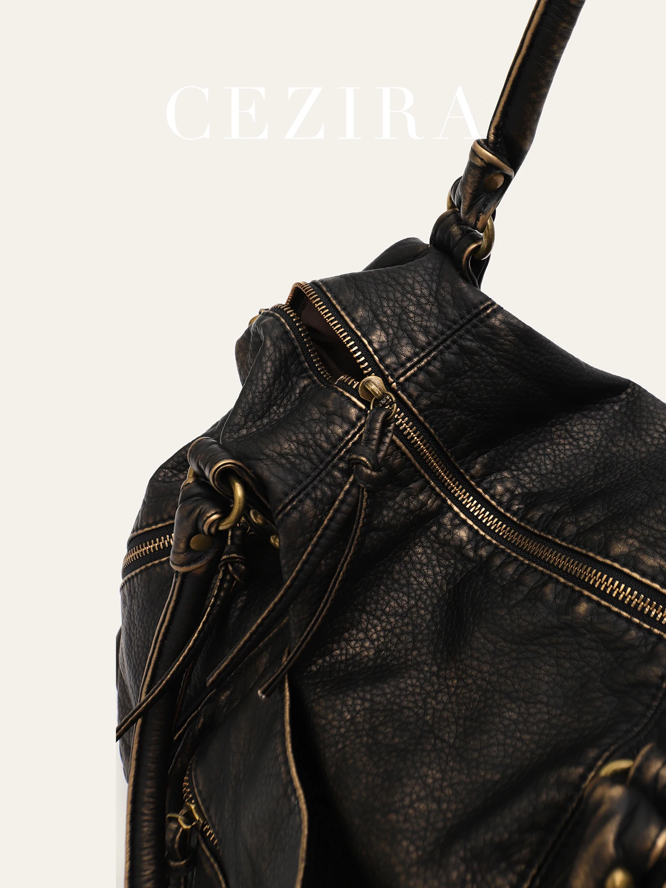- Product Name: CEZIRA Washed Vegan Leather Pockets Shoulder Hobo