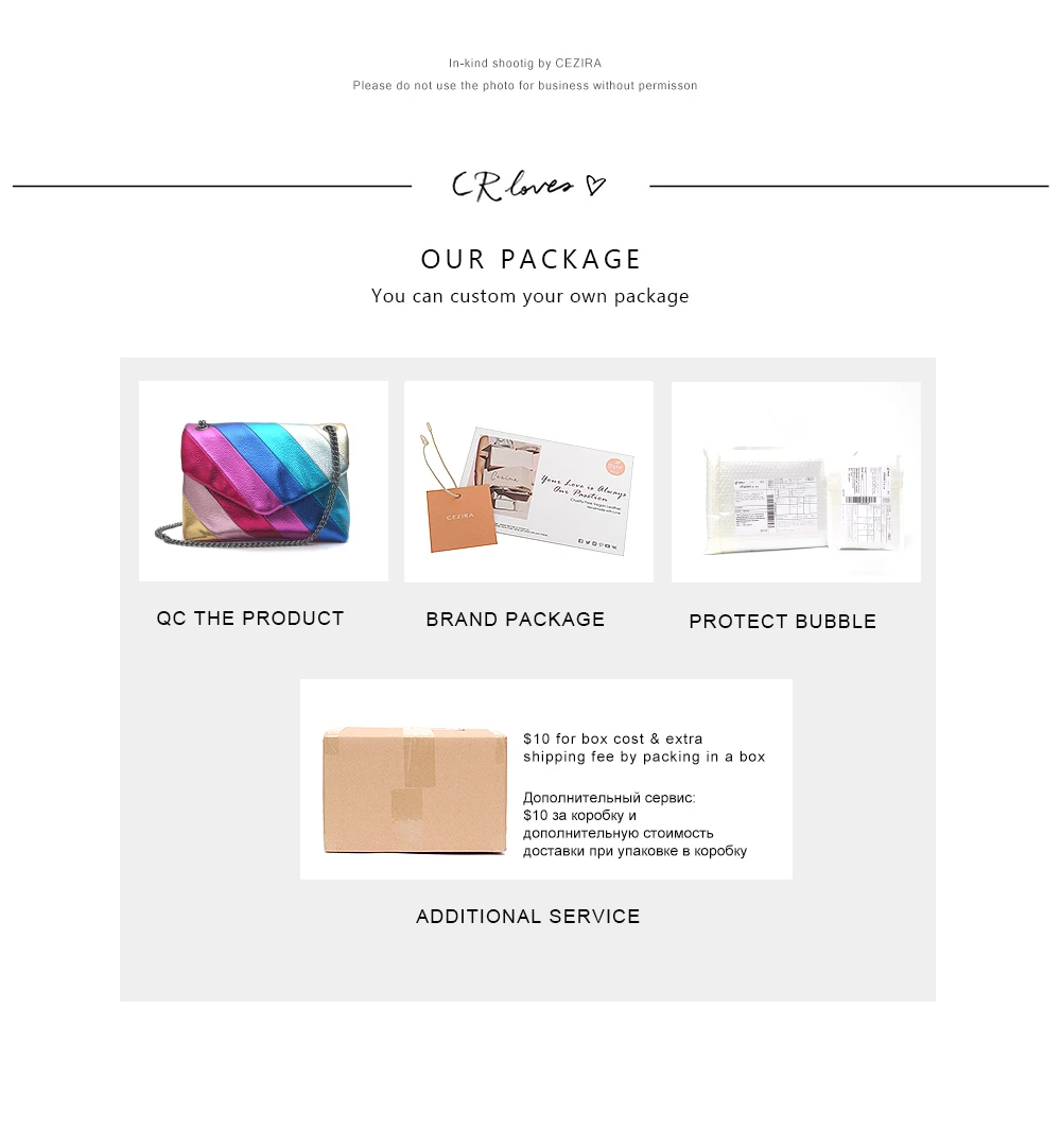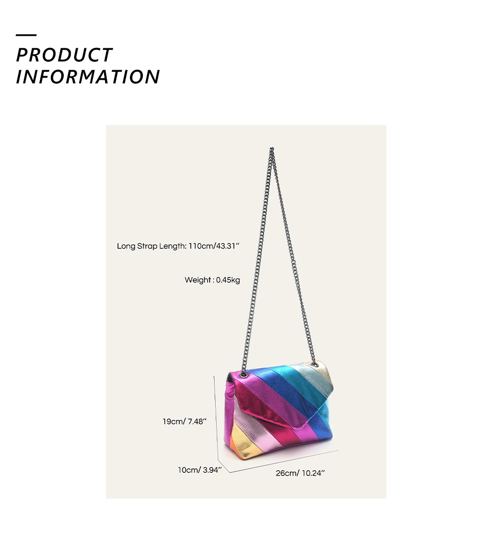 Be the first to review “CEZIRA Luxury Metallic PU Leather Flap Shoulder Bag for Women Colorful Stripes Patchwork Chain Cross body Handbag Daily Casual” Cancel reply