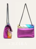 Be the first to review “CEZIRA Luxury Metallic PU Leather Flap Shoulder Bag for Women Colorful Stripes Patchwork Chain Cross body Handbag Daily Casual” Cancel reply