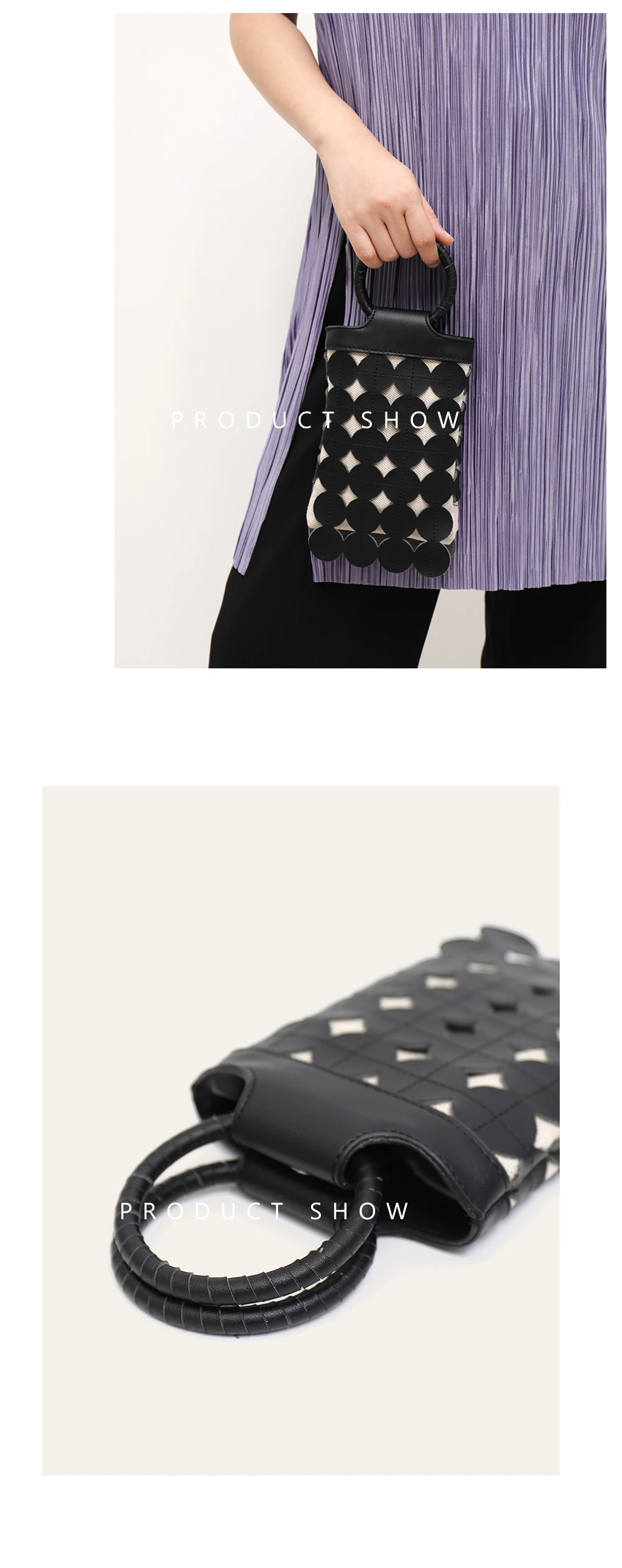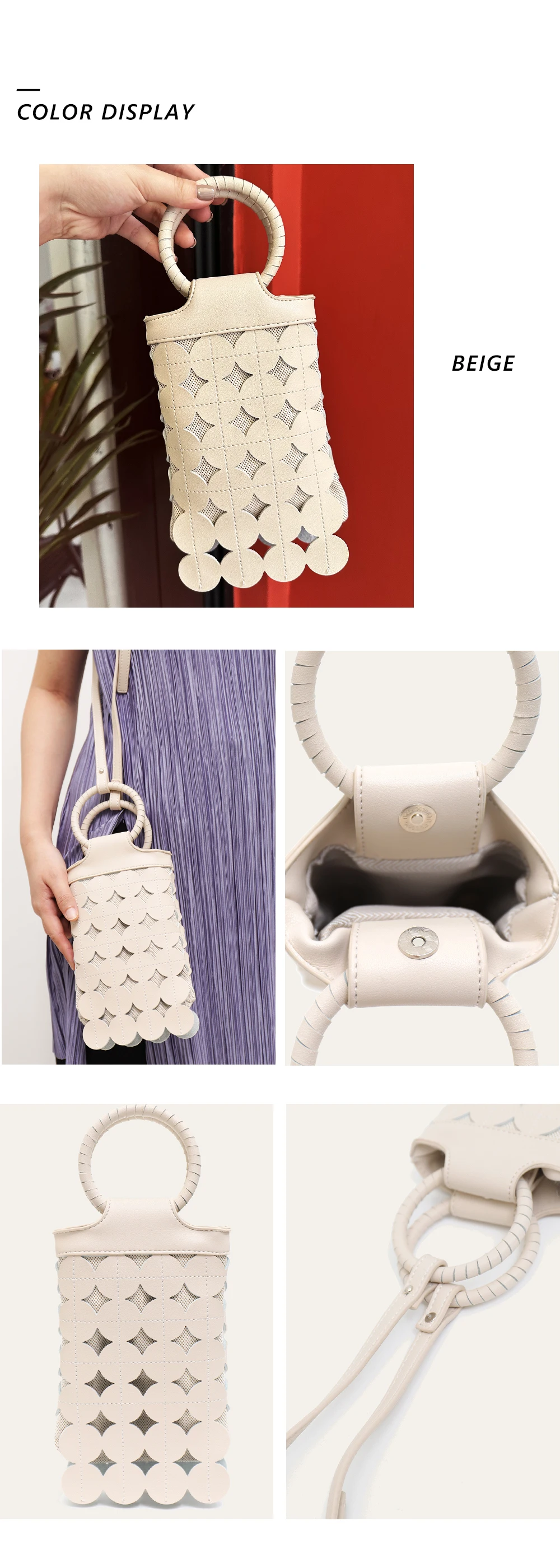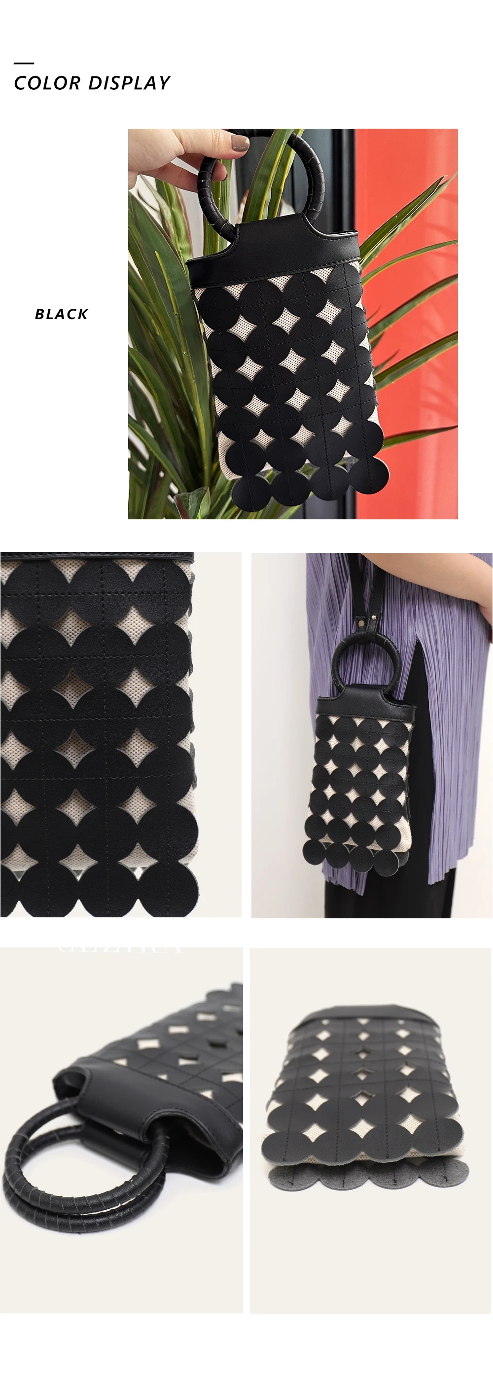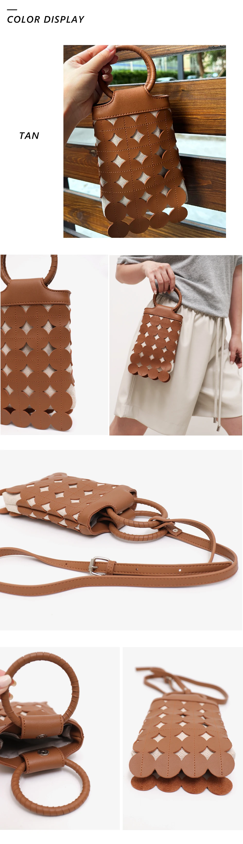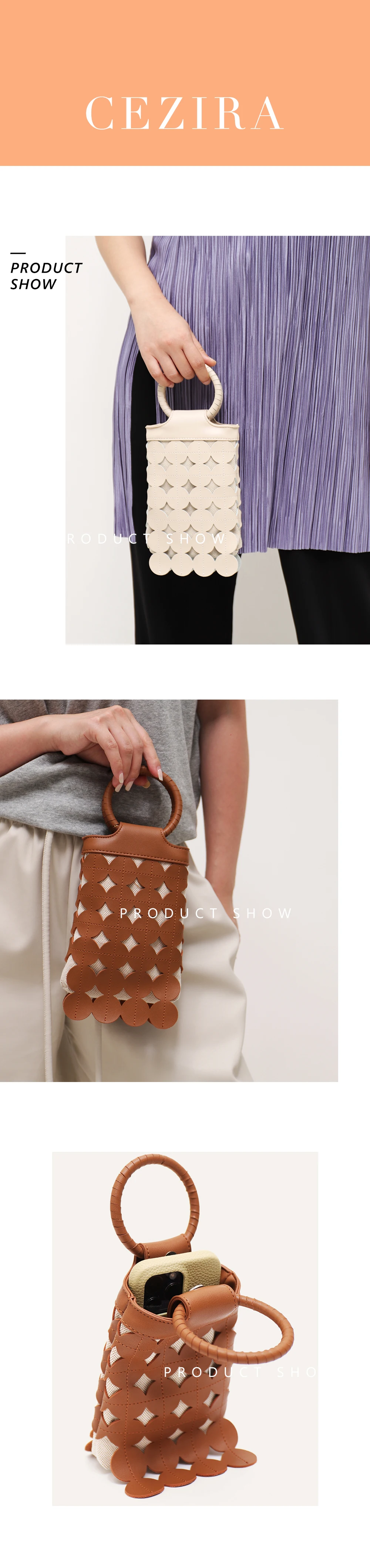 CEZIRA Niche Brand MIni Phone Purses Women Fashion Hollow Out PU Leather Handbags Round Handles Portable Crossbody Shoulder Bags