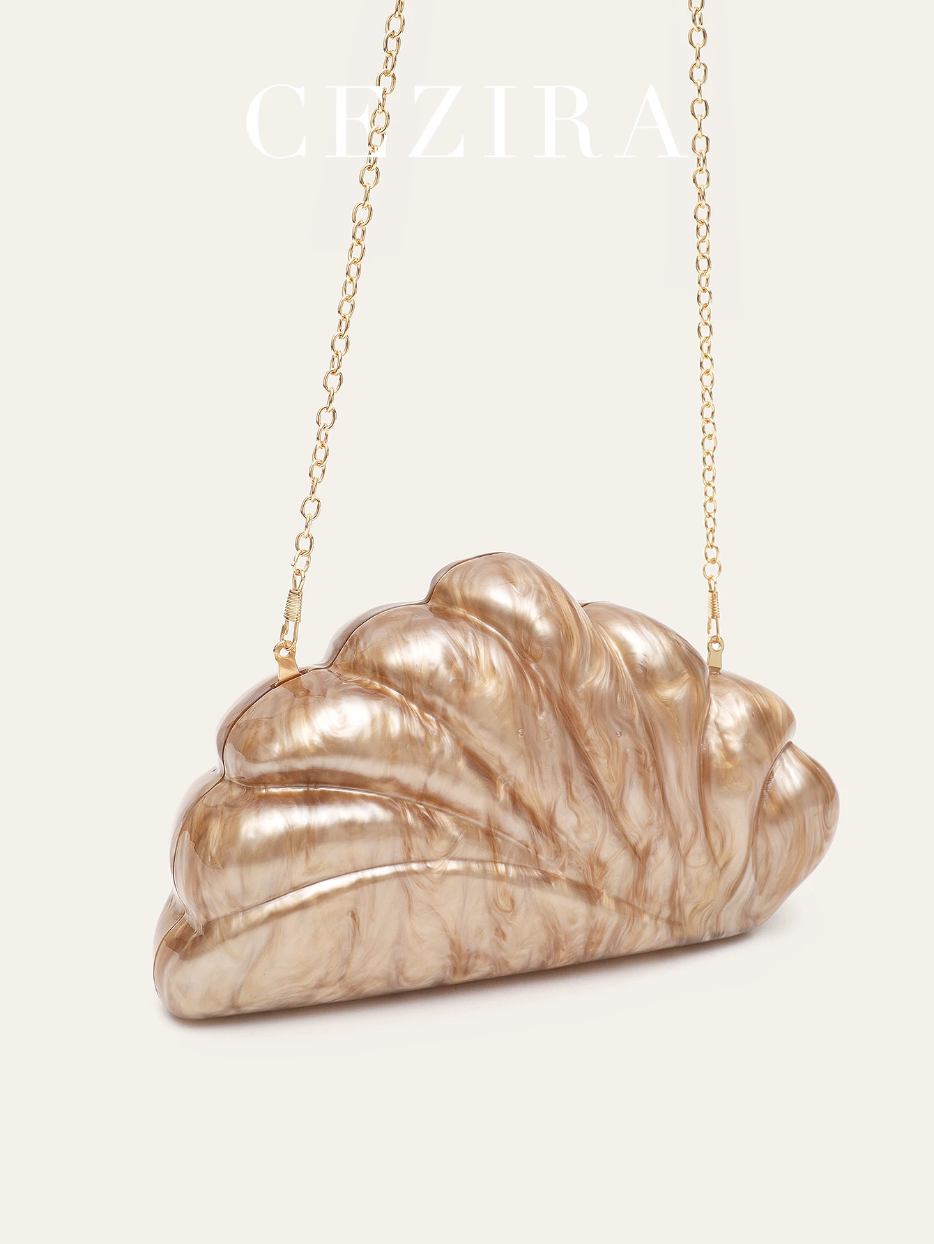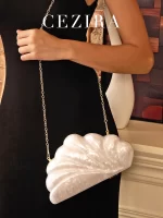 CEZIRA Women Elegant Stylish Wing Shape Acrylic Evening Clutch Handbag Metal Chain Cross body Banquet Dinner Party Date Fashion