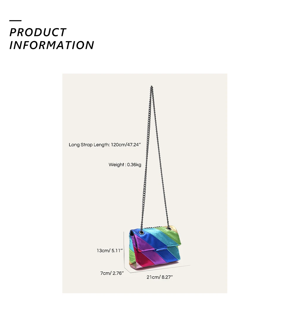 Be the first to review “CEZIRA Women Fashion Metallic Rainbow Color Stripes PU Vegan Leather Bag Small Square Magnet Flap Cover Metal Chain Cross body” Cancel reply