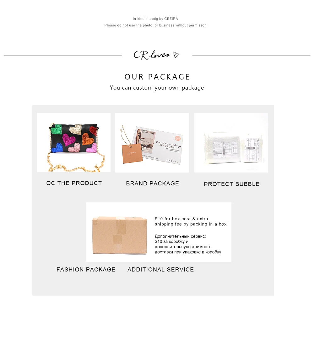 Be the first to review “CEZIRA Women Luxury Shiny Sequins PU Leather Patchwork Clutch Bag Colorful Heart shaped Applique Zip Handbag Long Chain Fashion” Cancel reply