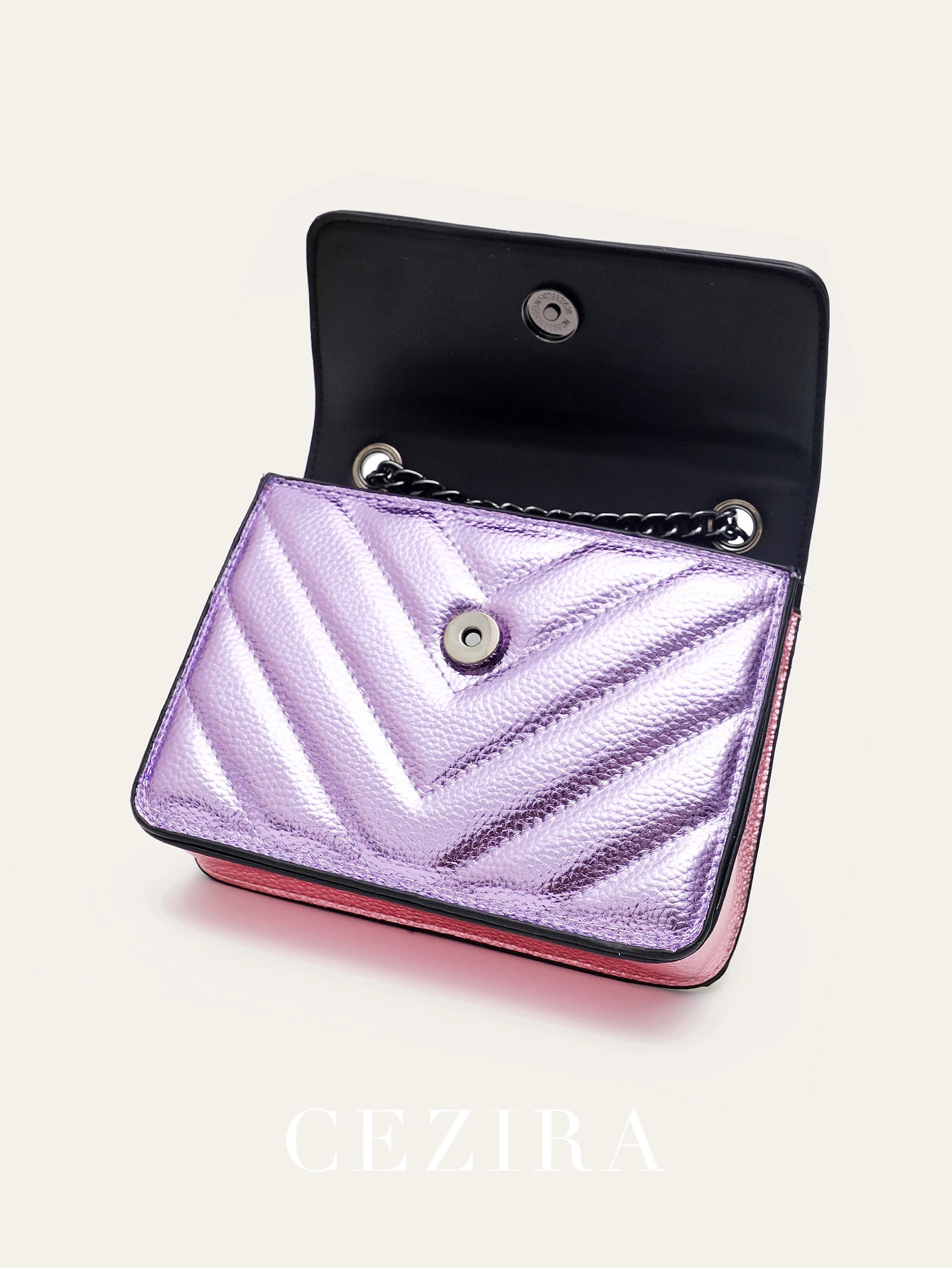 - Product Name: CEZIRA Metallic PU Leather Flap Shoulder Bag