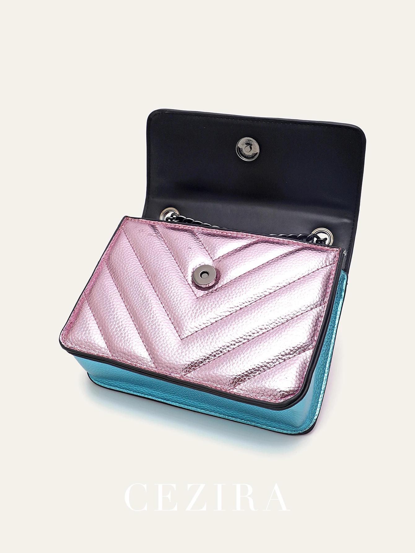 Be the first to review “CEZIRA Women PU Leather Handbag Metallic Colorful Patchwork Quilted Magnet Flap Cover Long Chain Square Crossbody Shoulder Bag” Cancel reply
