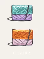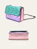 Be the first to review “CEZIRA Women PU Leather Handbag Metallic Colorful Patchwork Quilted Magnet Flap Cover Long Chain Square Crossbody Shoulder Bag” Cancel reply