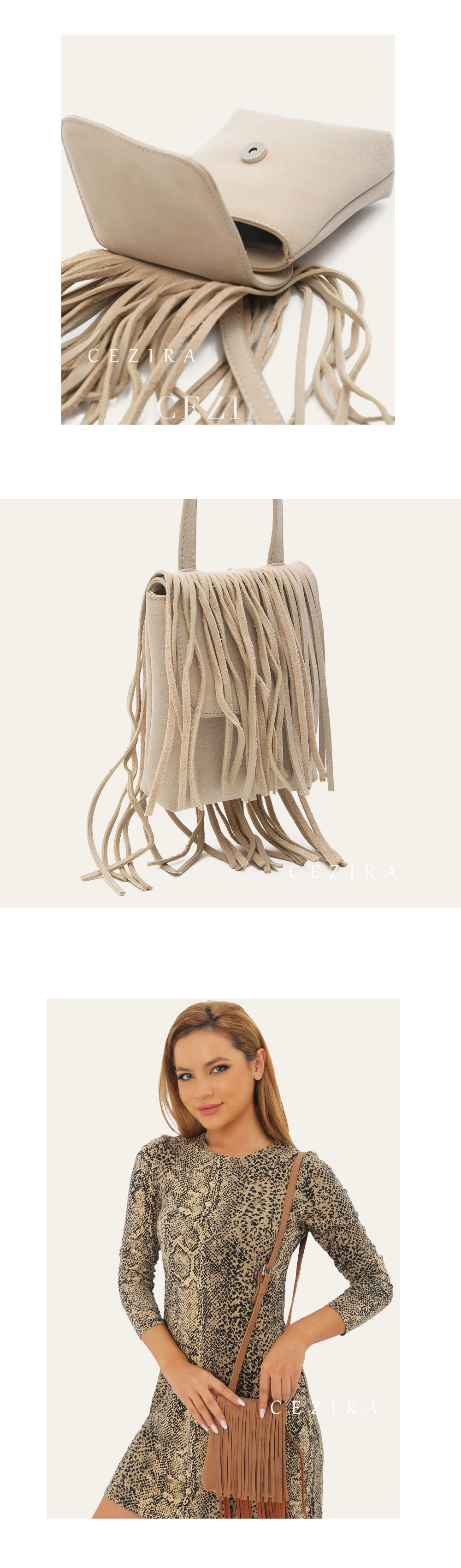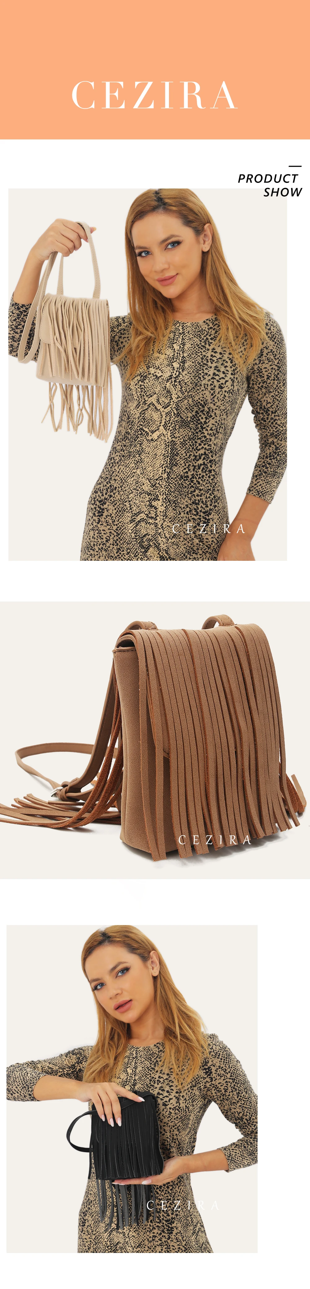 CEZIRA Women PU Vegan Leather Casual Tassel Fringe Handbag Portable Small Phone Purse Cross Body Shoulder Sling Bag Daily Travel