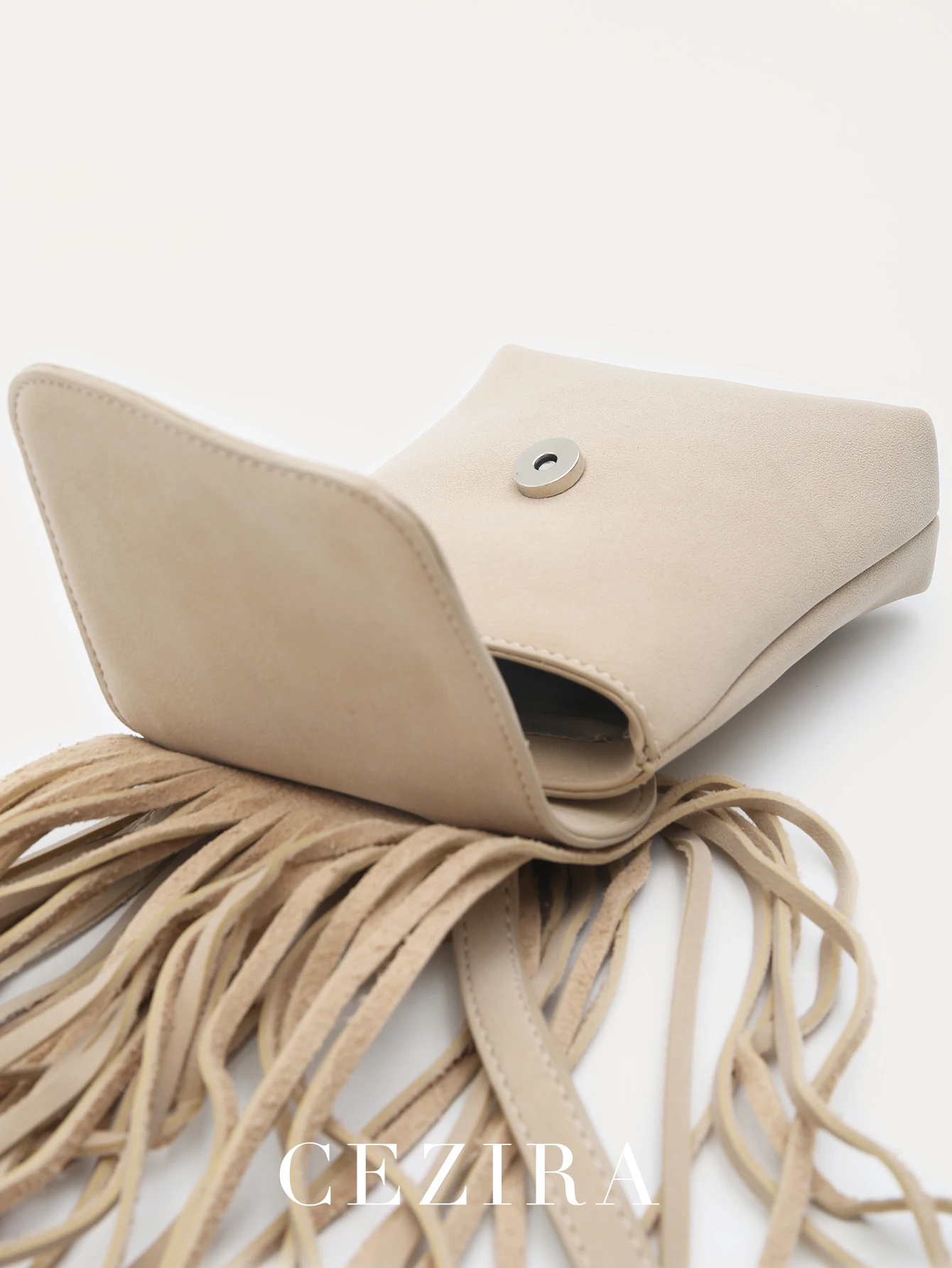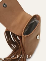 CEZIRA Women PU Vegan Leather Casual Tassel Fringe Handbag Portable Small Phone Purse Cross Body Shoulder Sling Bag Daily Travel