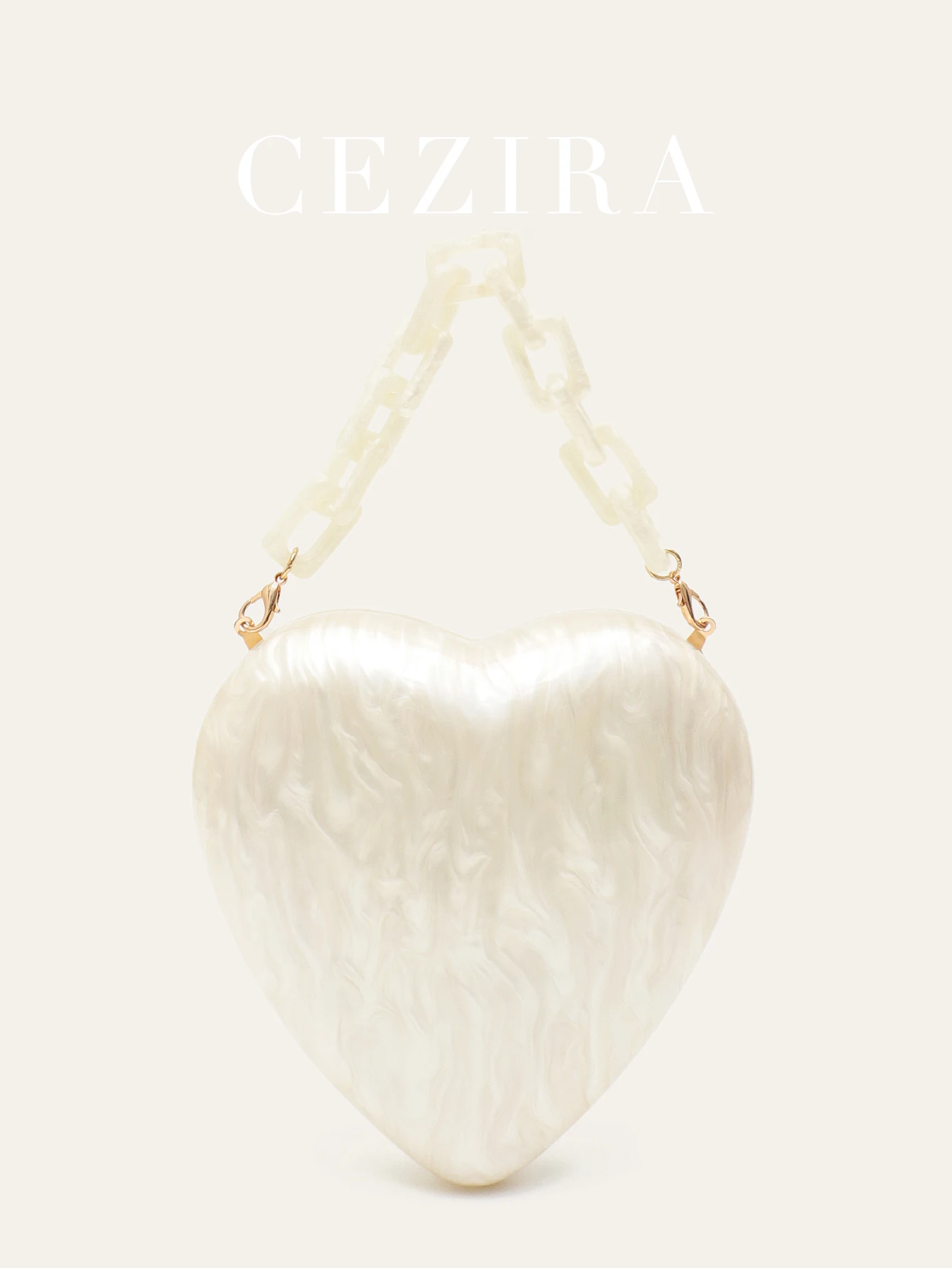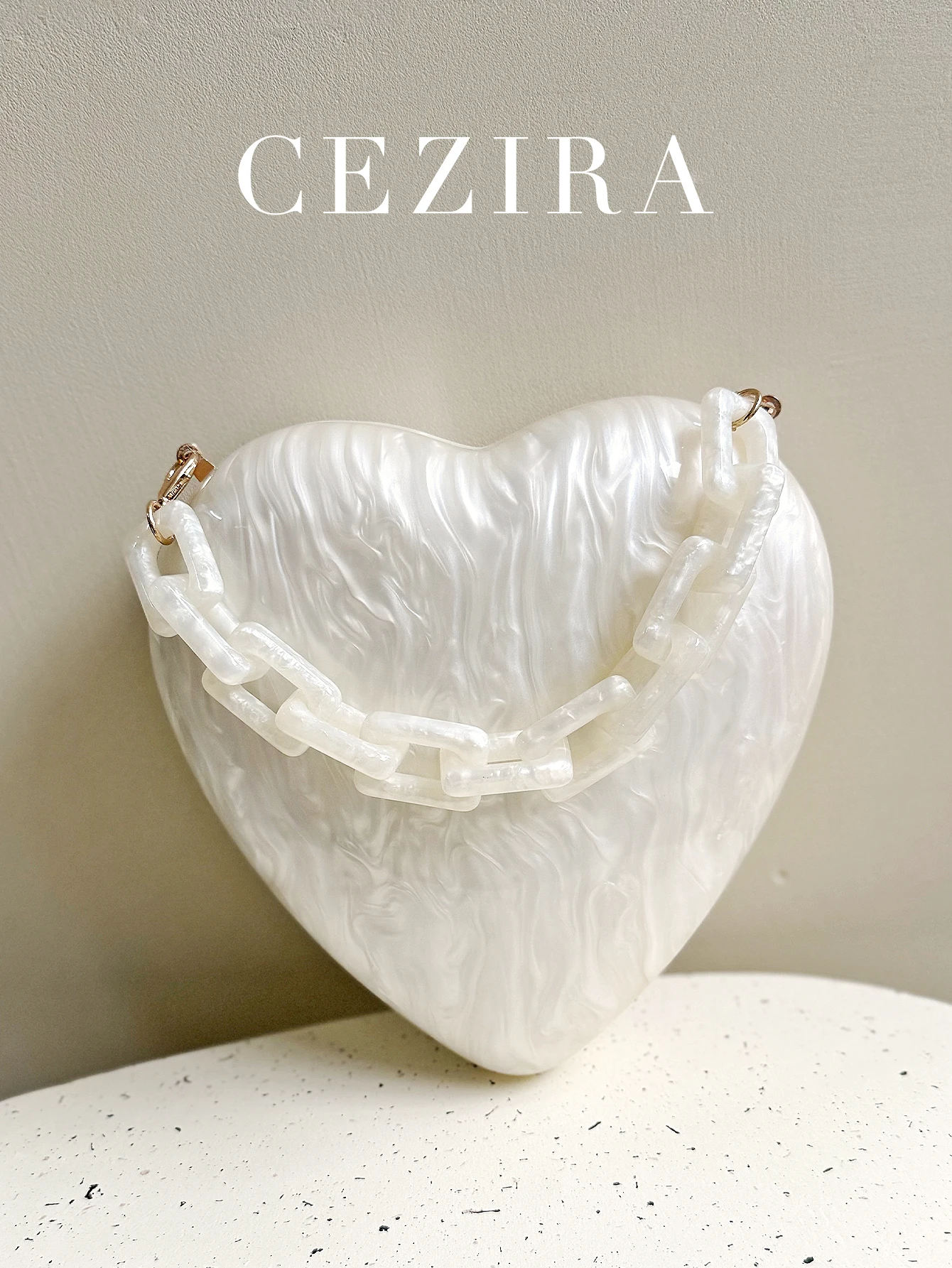 CEZIRA Women’s Brand Fashion Design Elegant Heart Shape Acrylic Clutch Marble Pattern Chain Top-handle Evening Bag Bride Purse