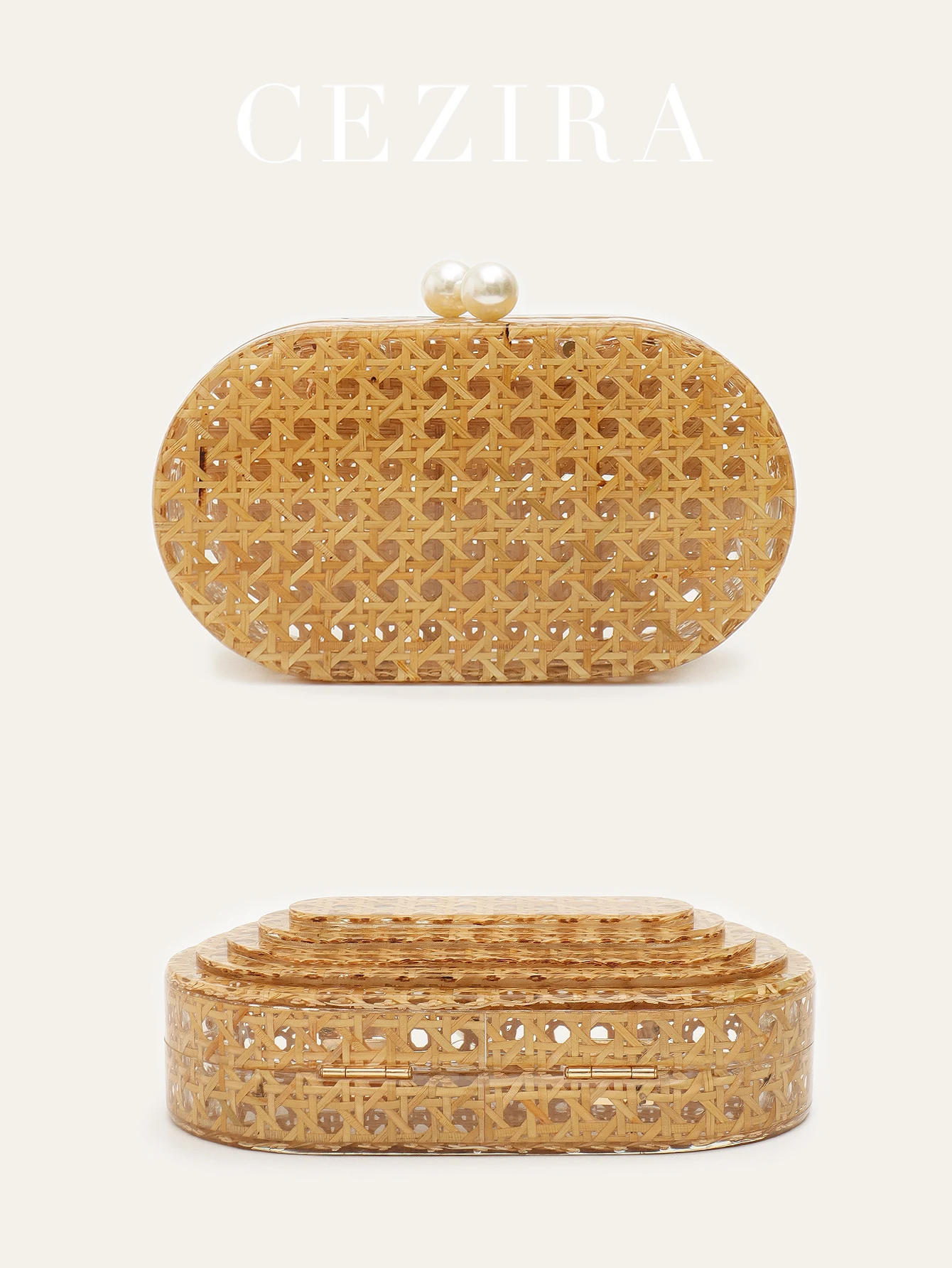 - Product Name: CEZIRA Luxury Rattan Woven Acrylic Evening Clutch