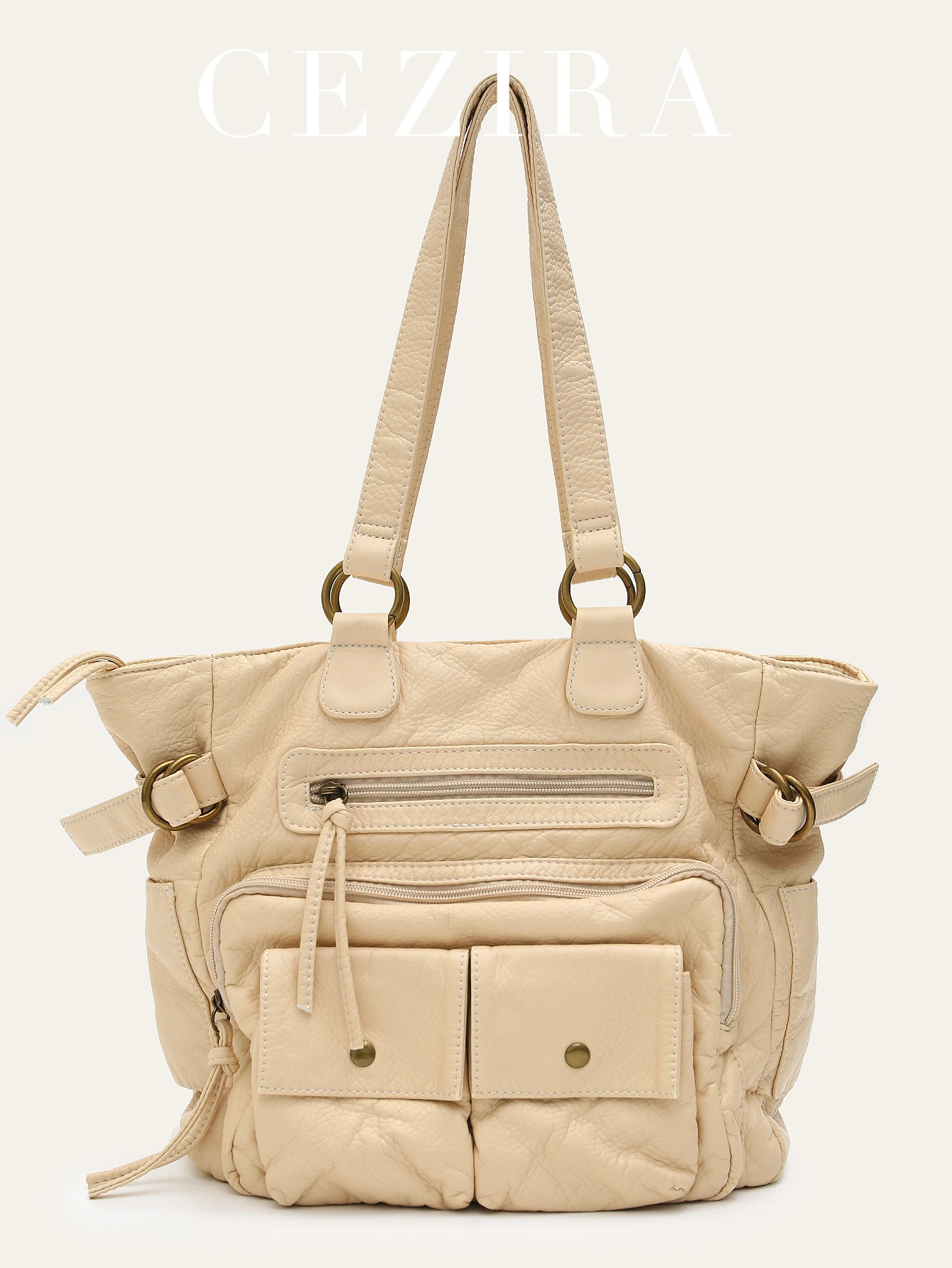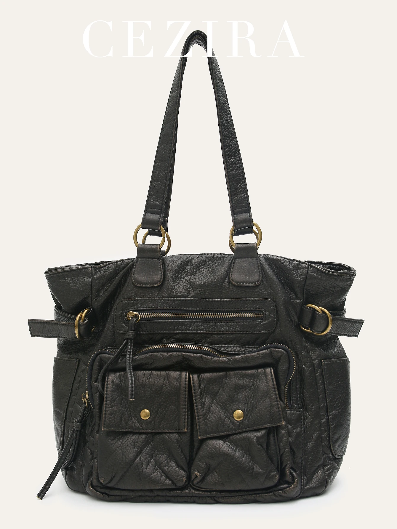 - Product Name: CEZIRA Washed Vegan Leather Pockets Shoulder Hobo