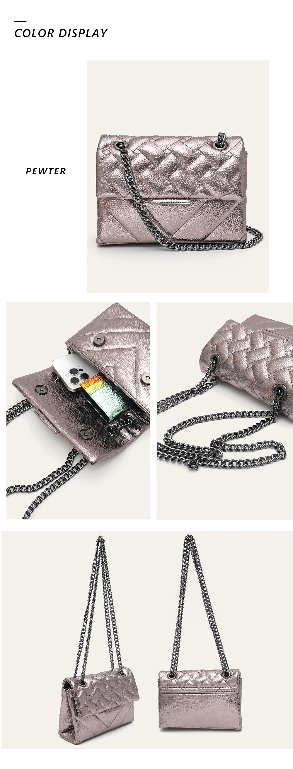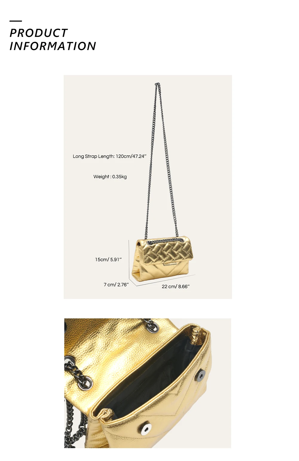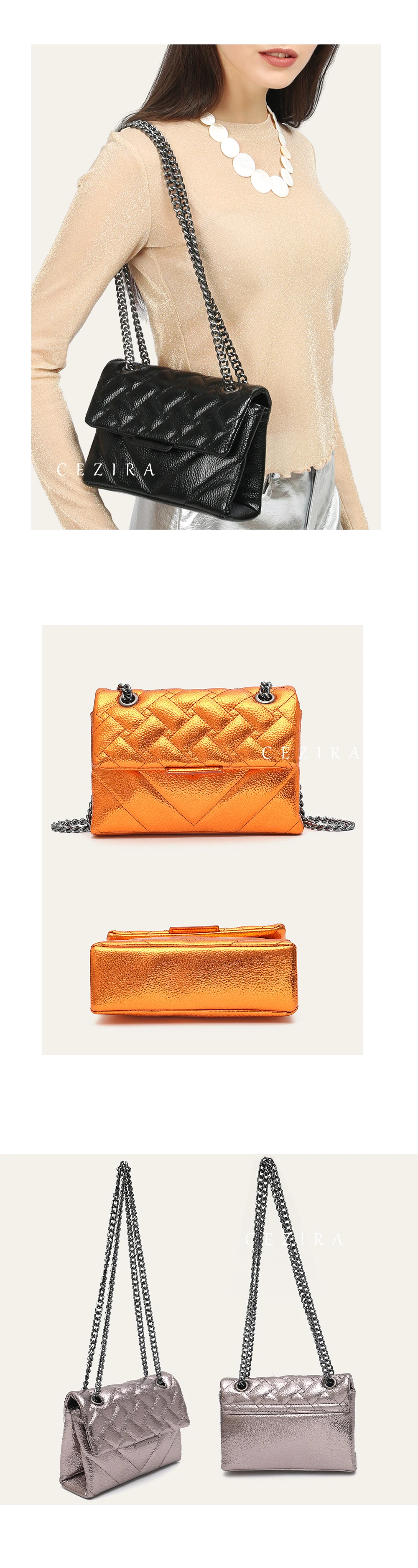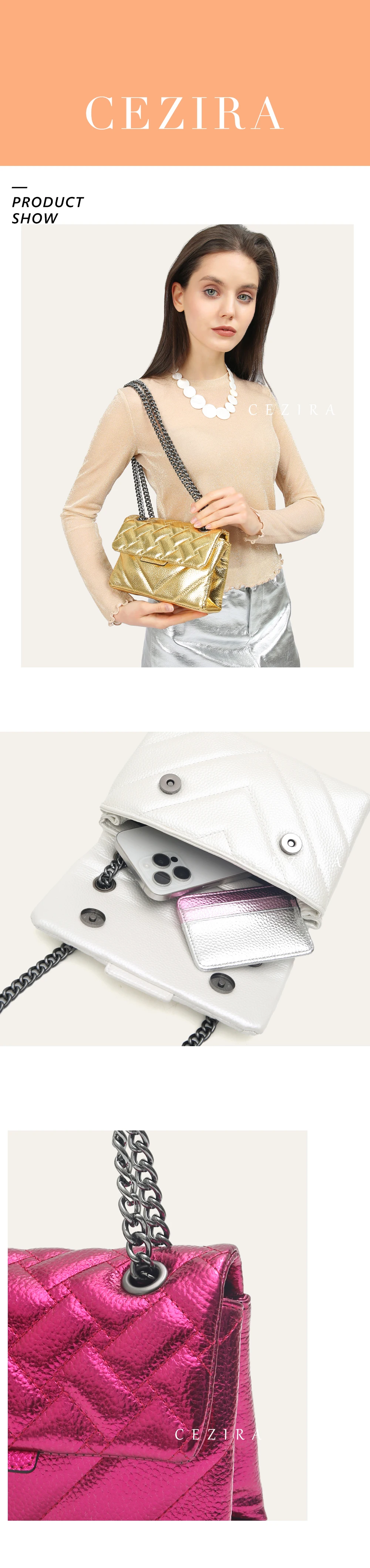CEZIRA Women’s Luxury Brand Metallic PU Leather Handbag Fashion Quilted Flap Messenger Shoulder Bag Daily Casual Versatile Purse