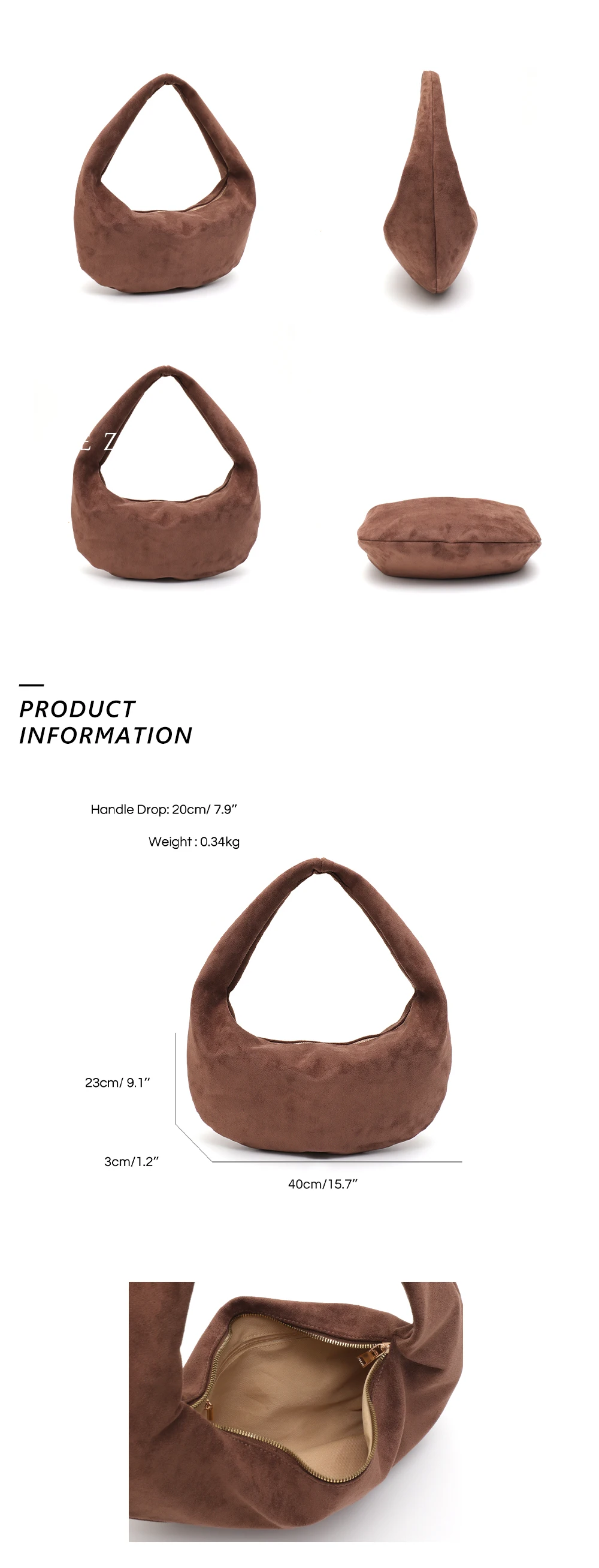 CR Minimalist Simple Hobo for Women Faux Suede Fabric Underarm Shoulder Bag Lightweight Elegant Casual Daily Handbag Versatile