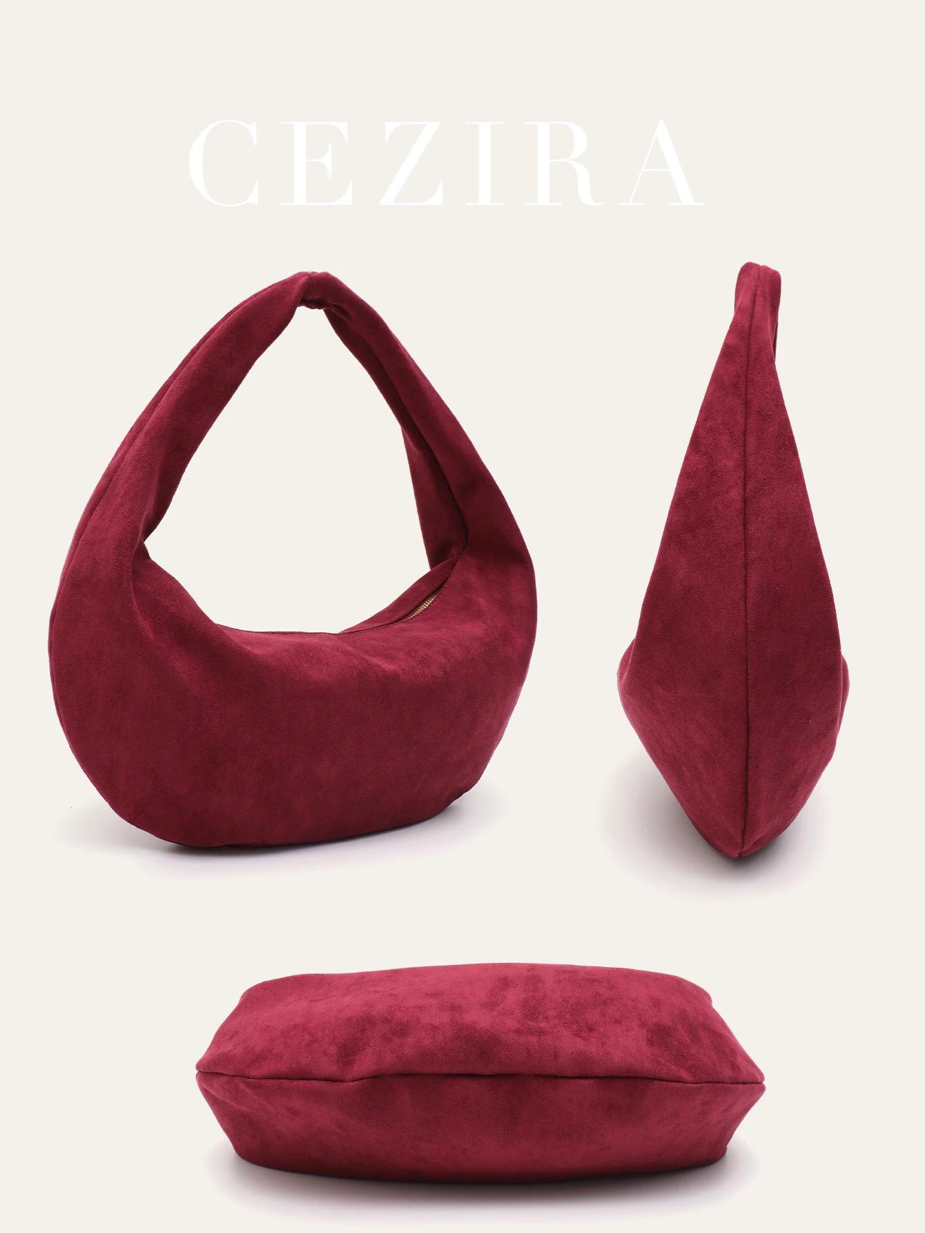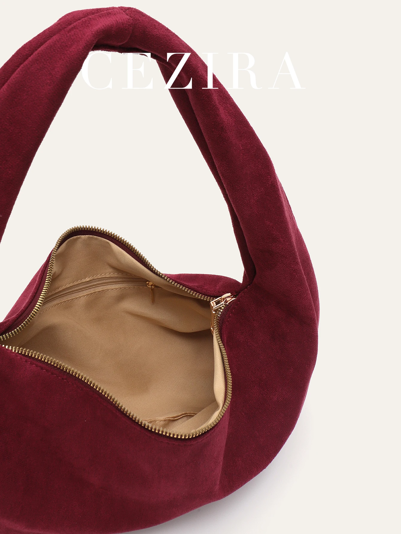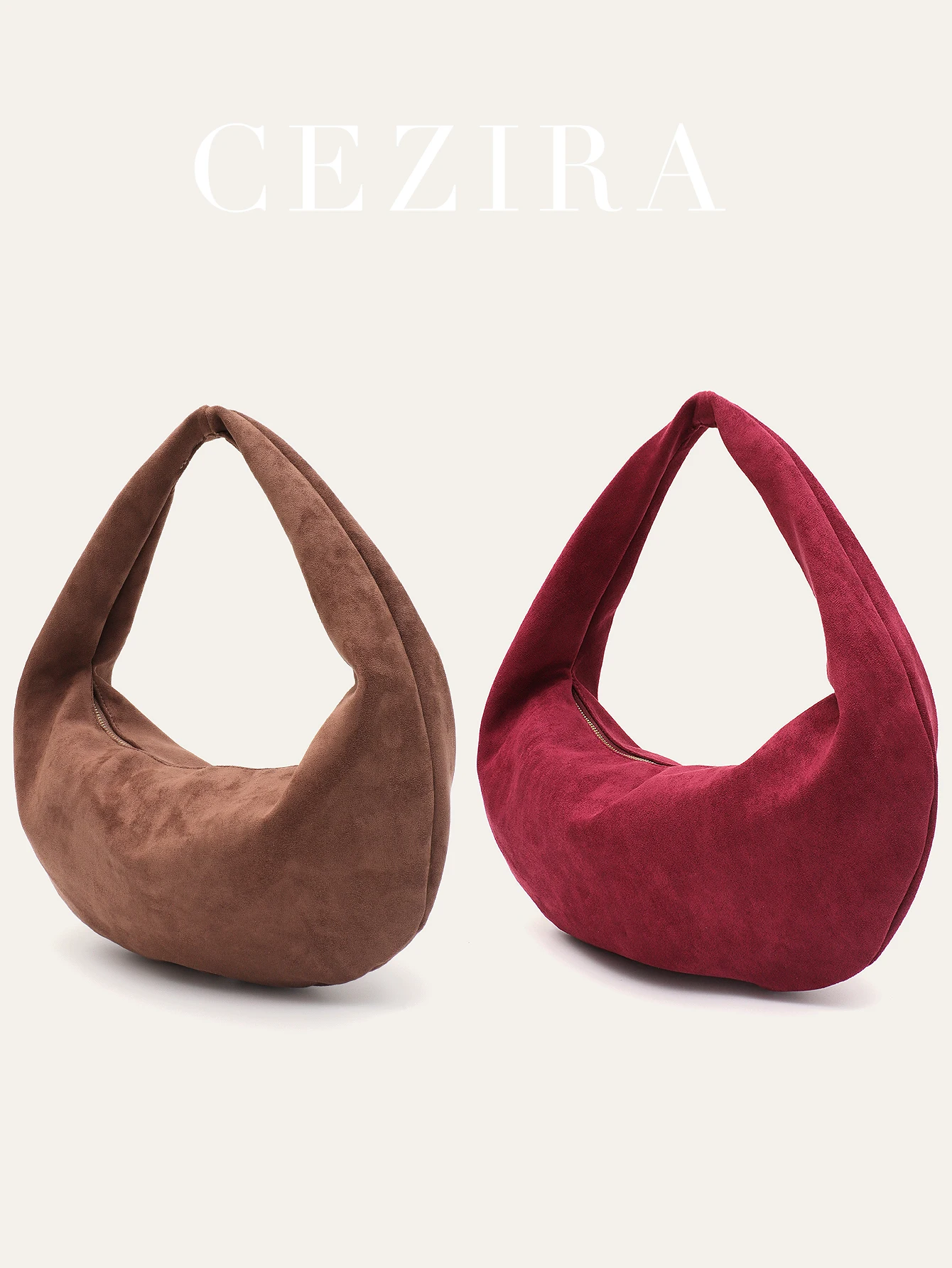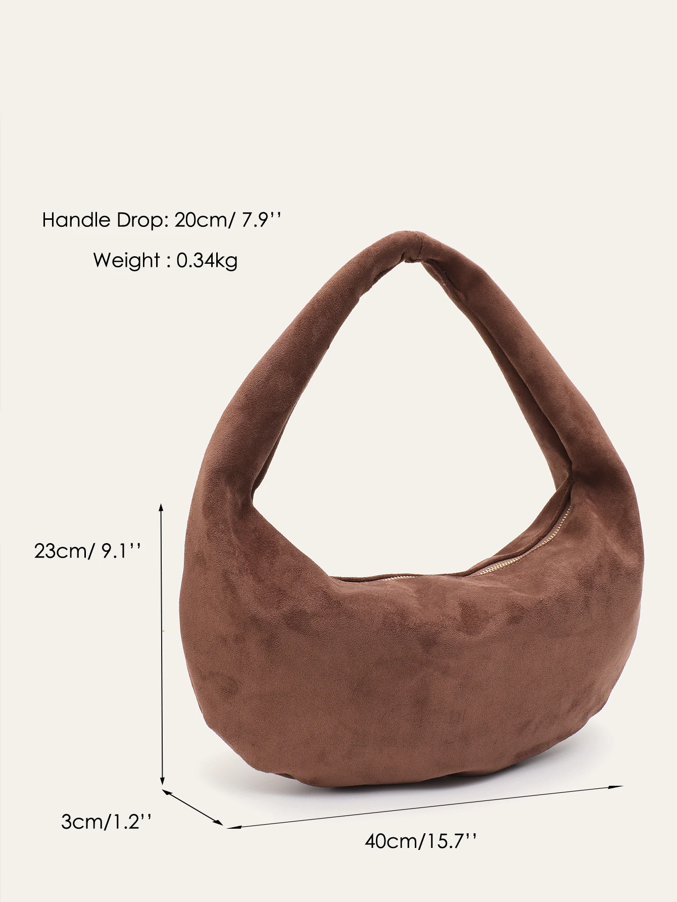 CR Minimalist Simple Hobo for Women Faux Suede Fabric Underarm Shoulder Bag Lightweight Elegant Casual Daily Handbag Versatile