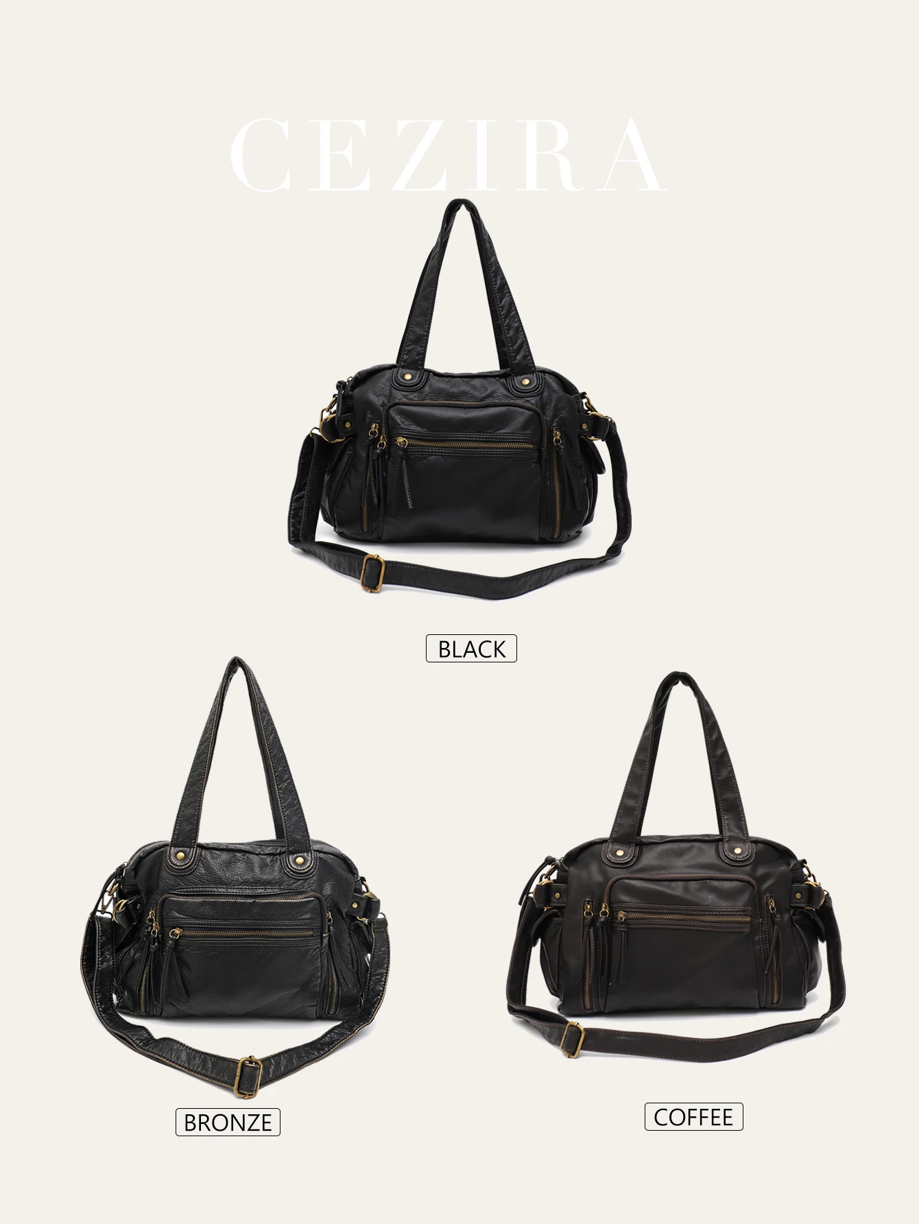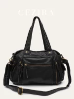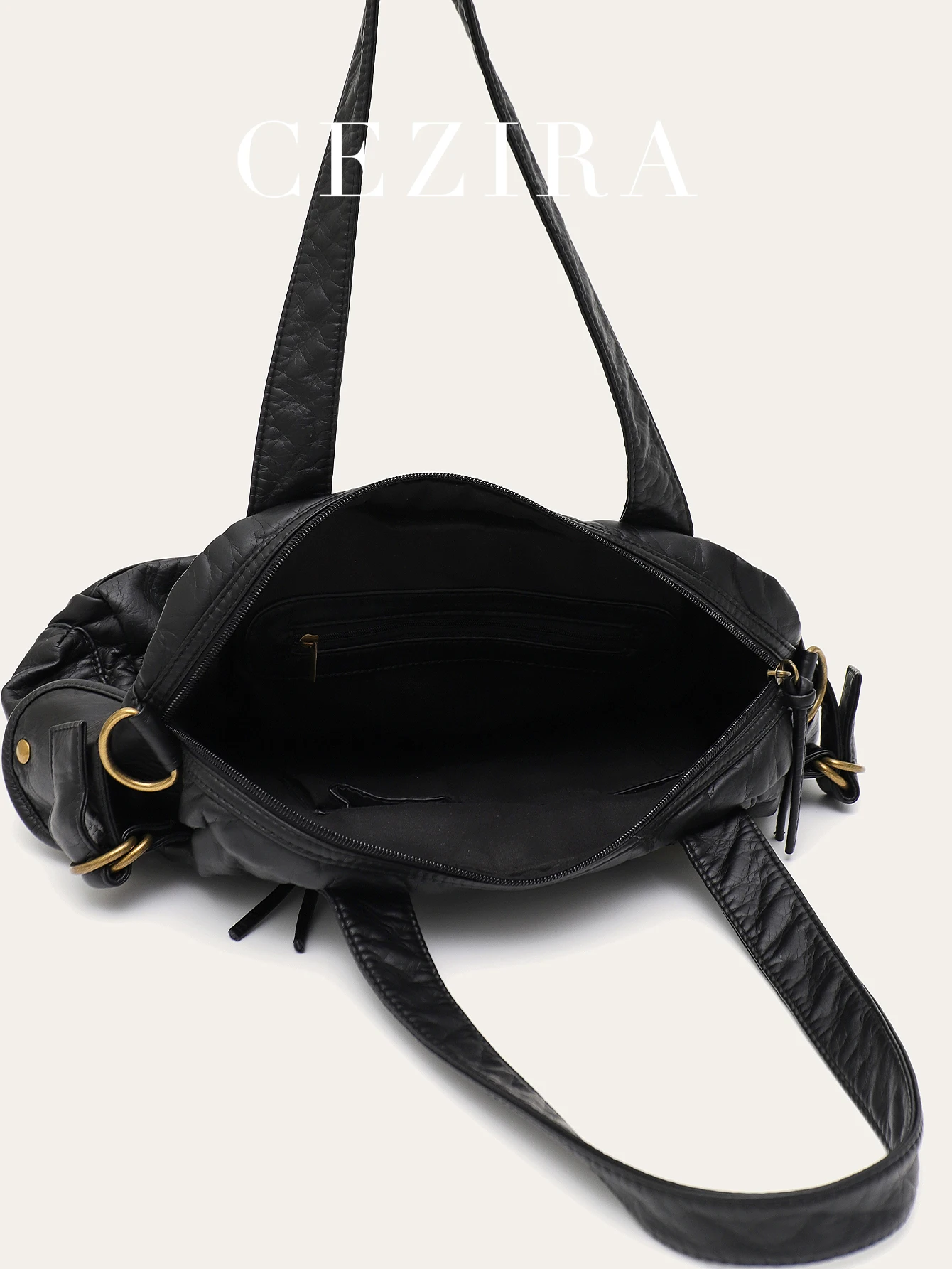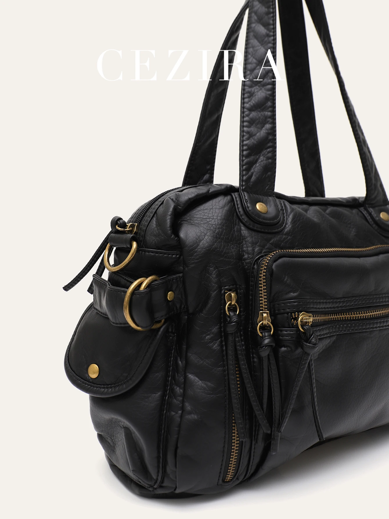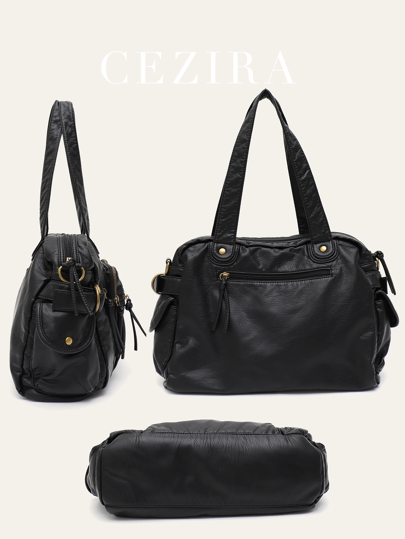 - Product Name: CEZIRA Washed Vegan Leather Pockets Shoulder Tote