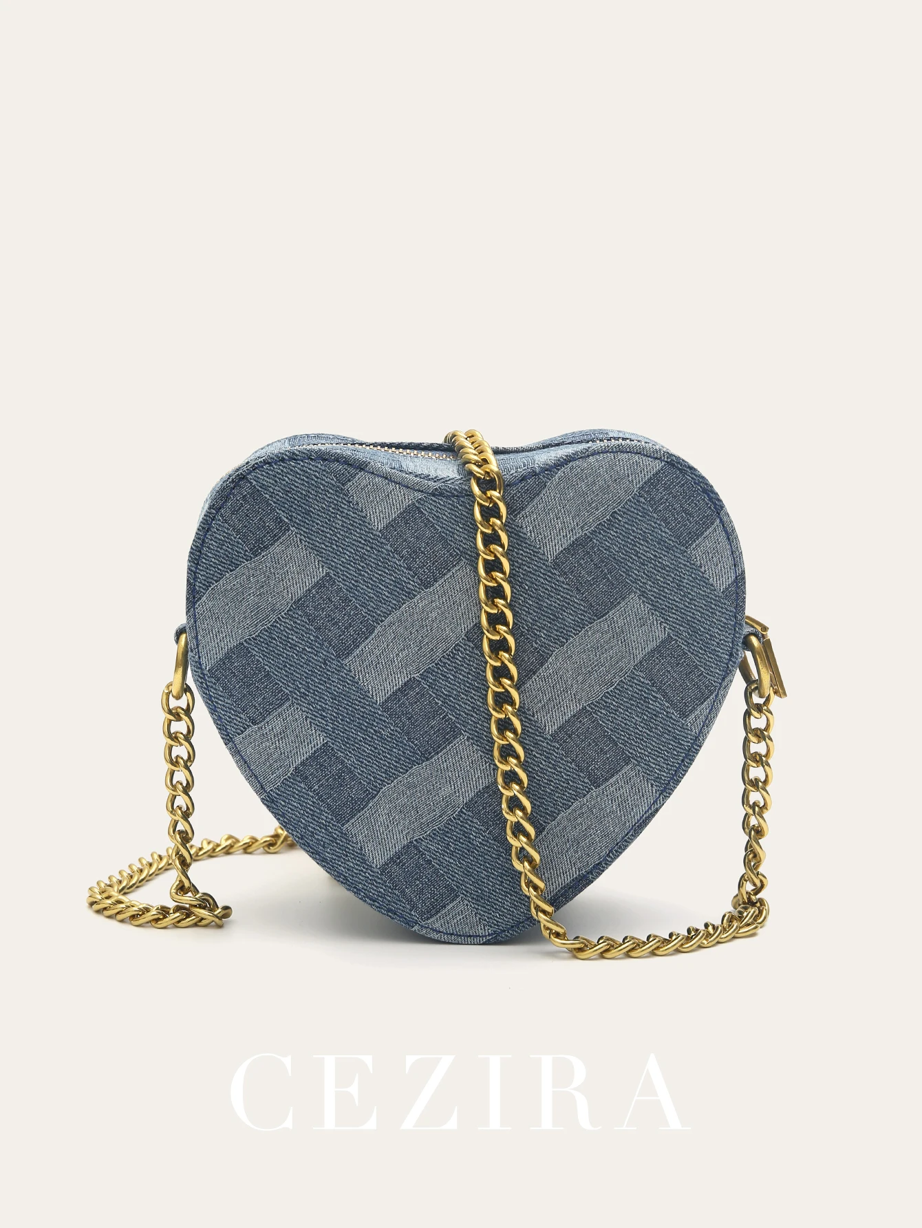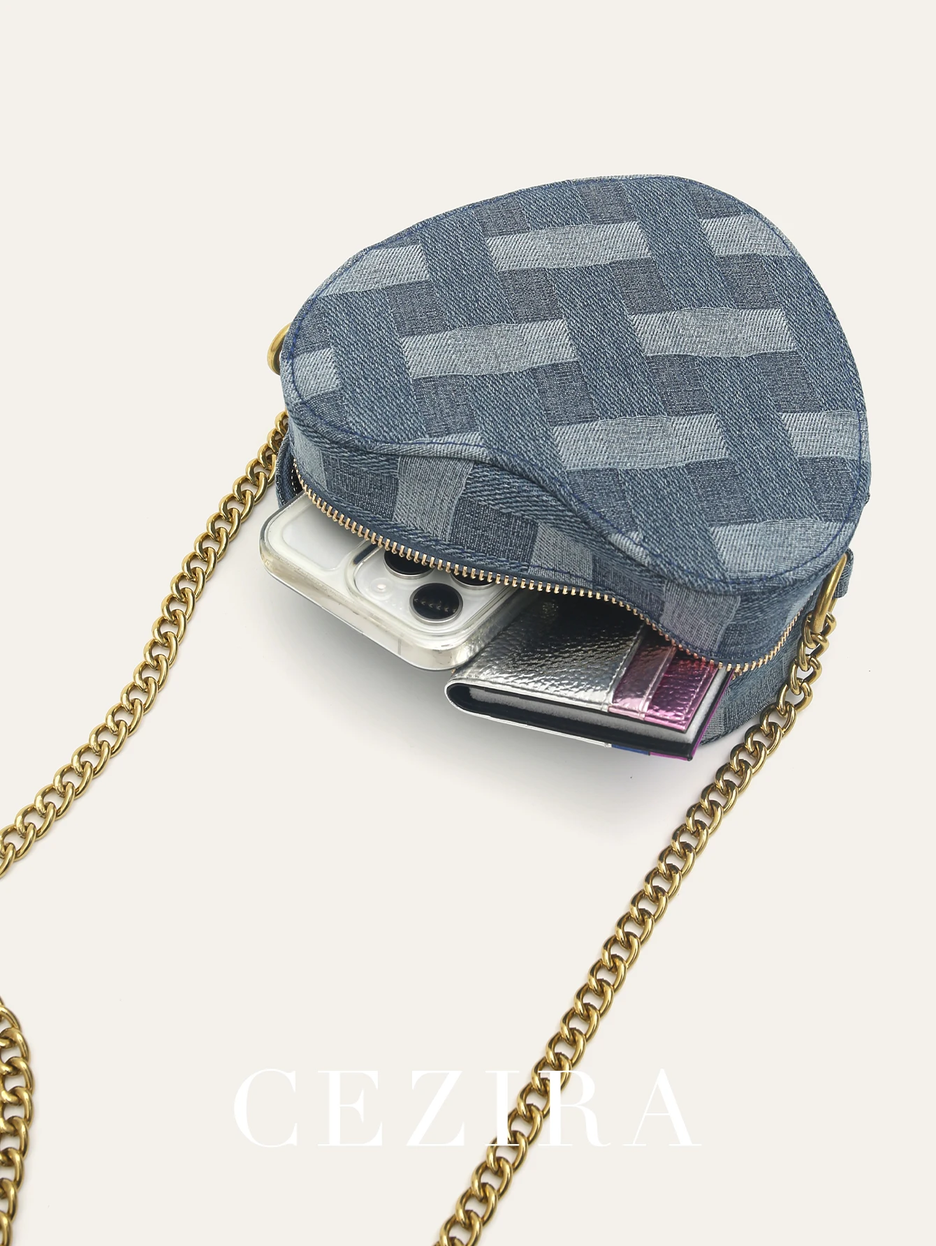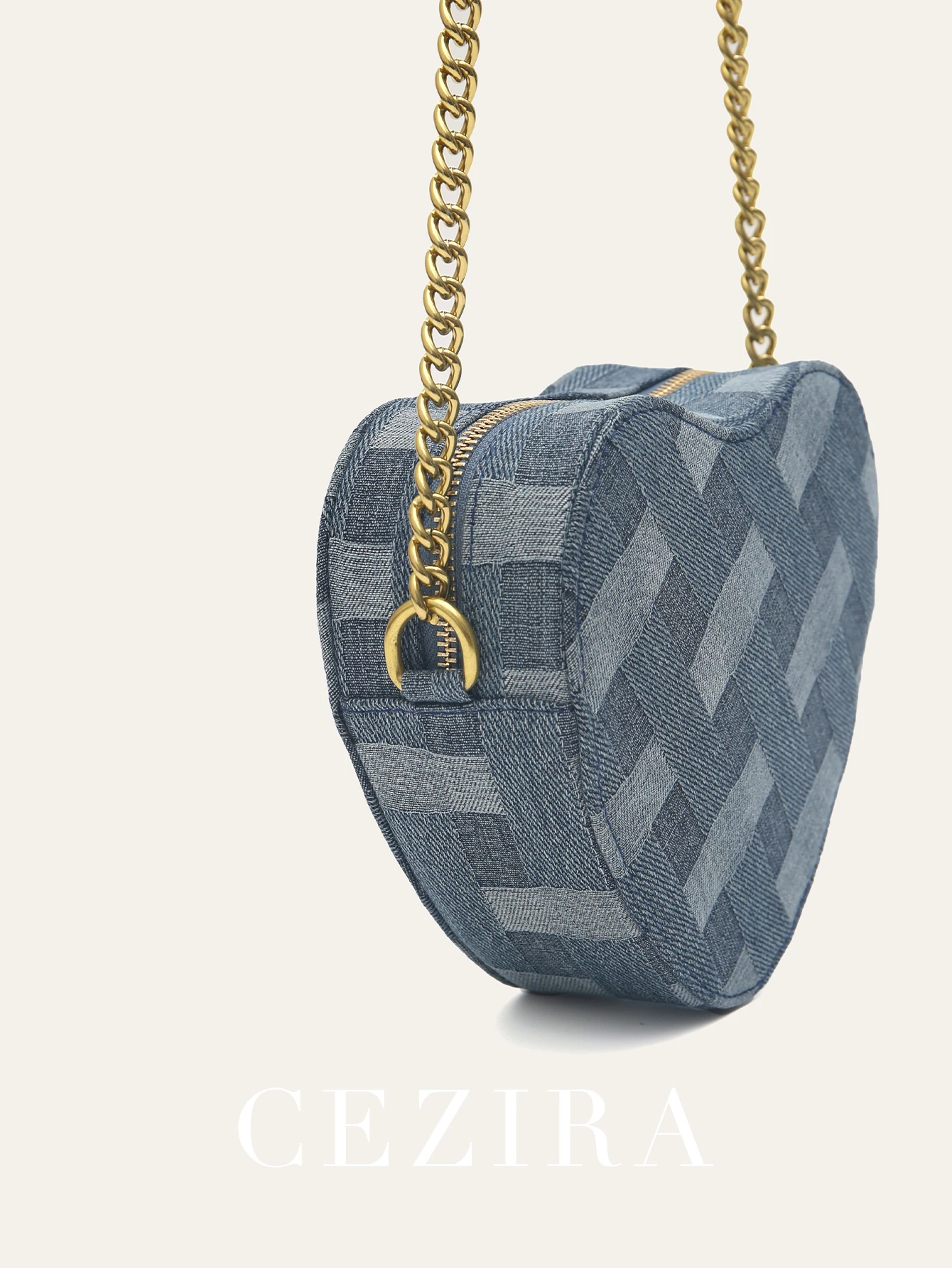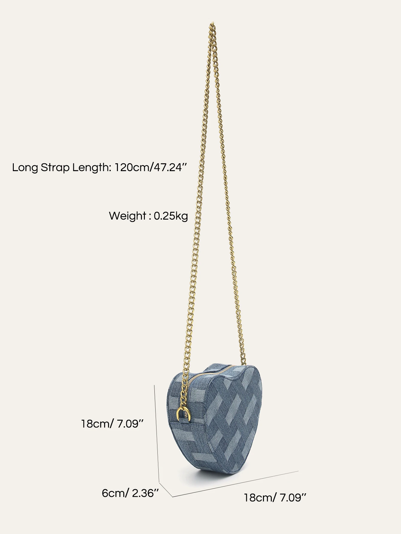 CR Women’s Heart Shaped Fabric Handbag Metal Long Chain Fashionable Cross body Shoulder Bag Casual Street Versatile Daily Gift